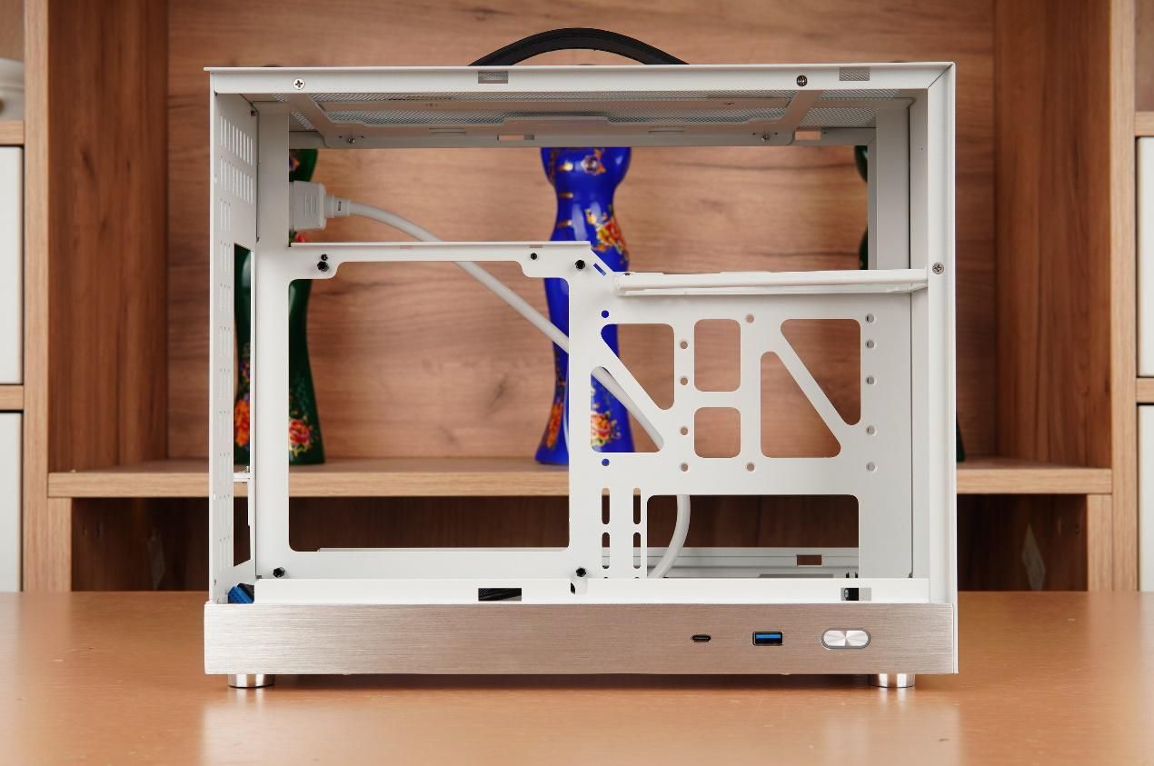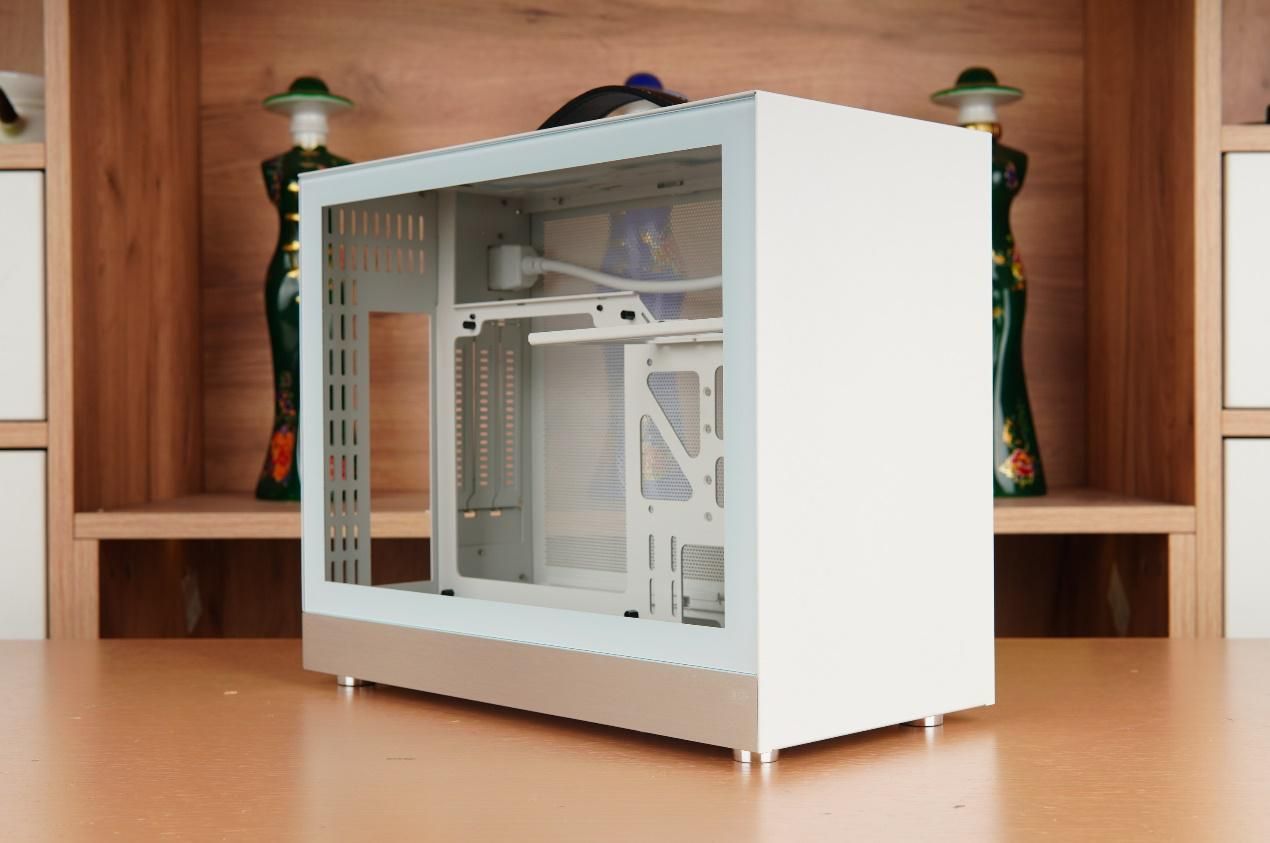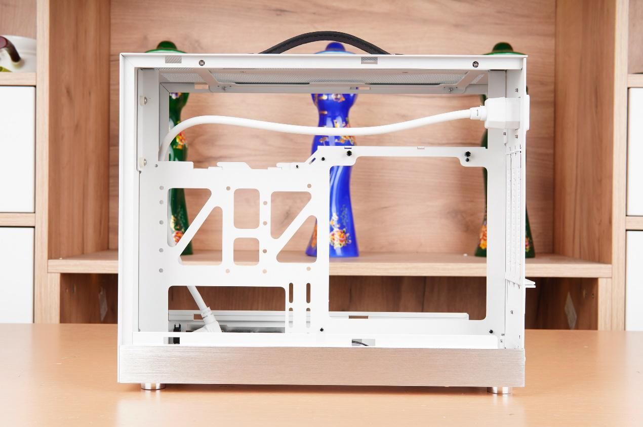 机箱内部的五金结构相与一般的A4结构基本一致。机箱整体尺寸维持在了340mm×170×276mm(L×W×H),容量为15.9L,风冷散热器最高支持77mm,得益于机箱的整体加高,也终于支持240规格水冷的安装了,可以使用更加高级的CPU了。
