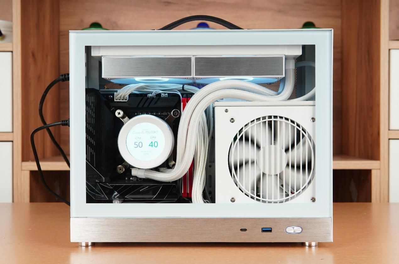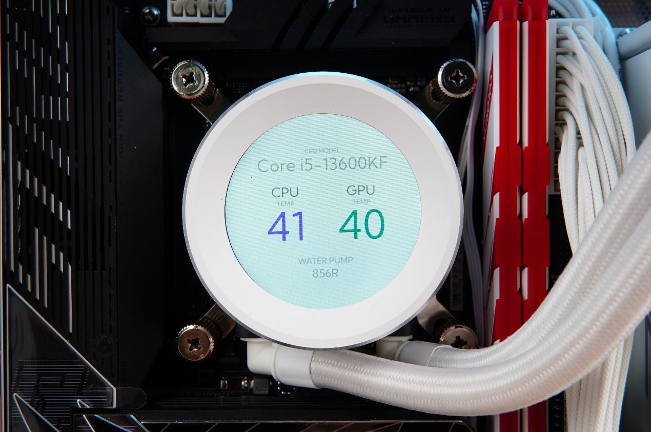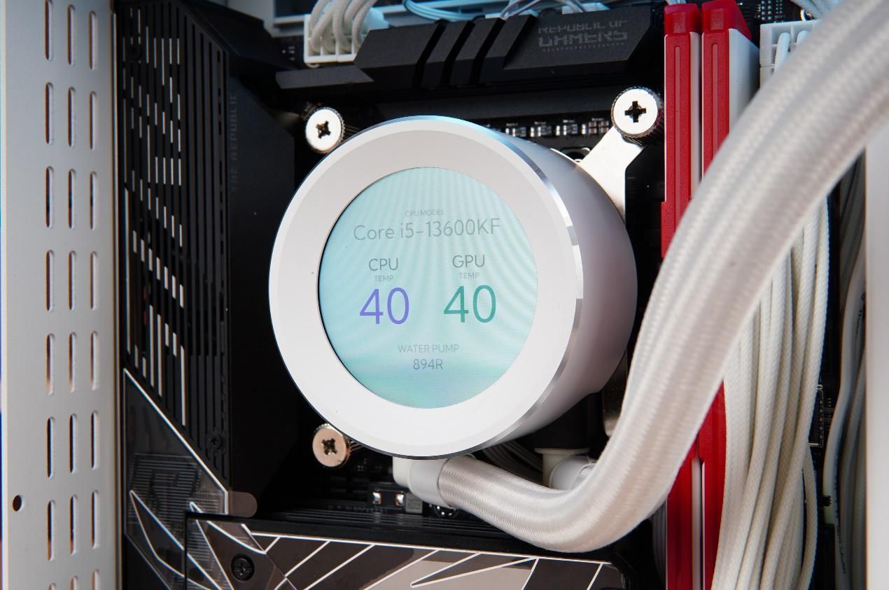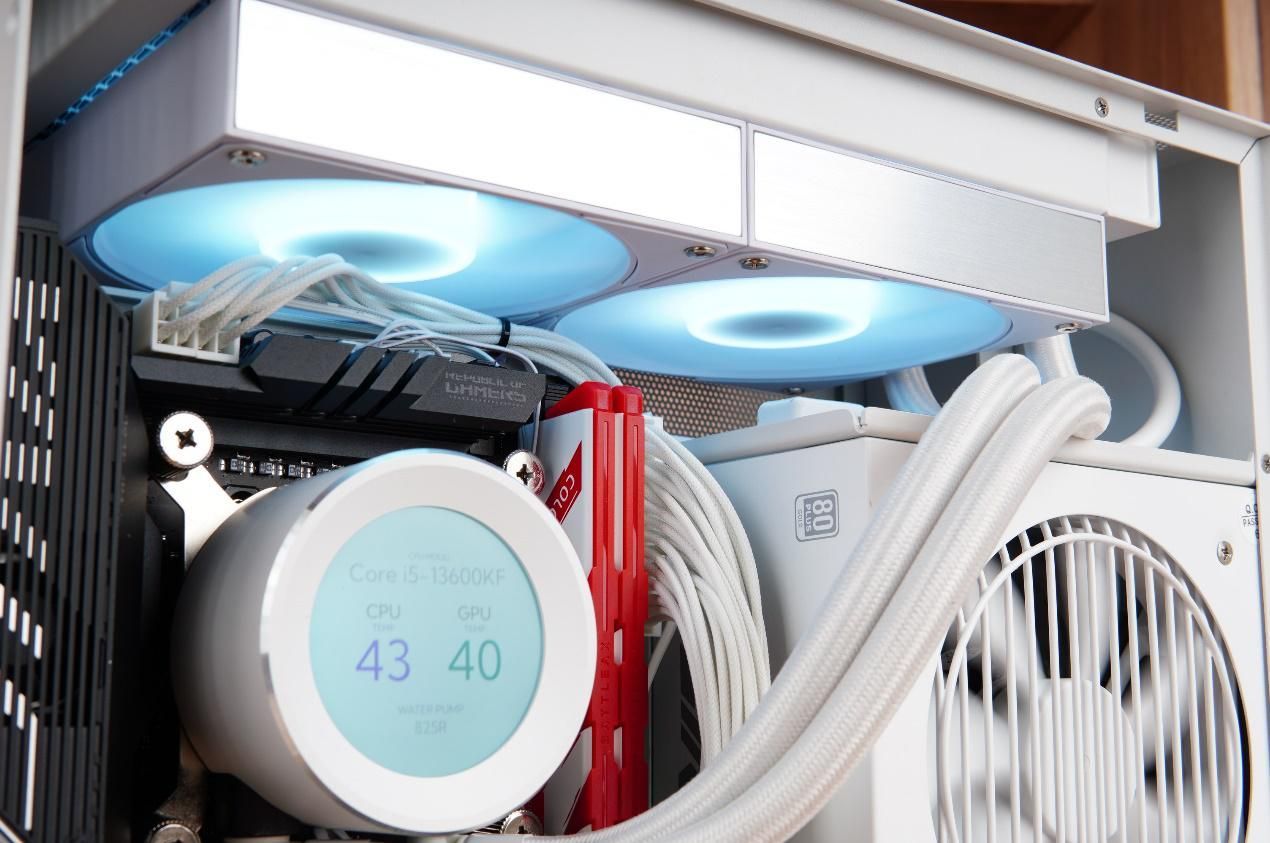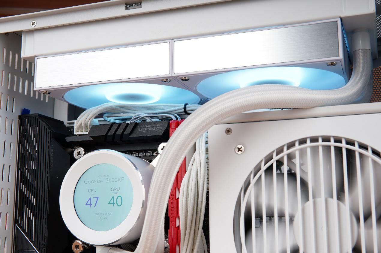 散热器方面搭配的是先马XW240一体式水冷,冷头带有一个小屏幕,整好可以利用闪鳞S500新增的侧透设计。