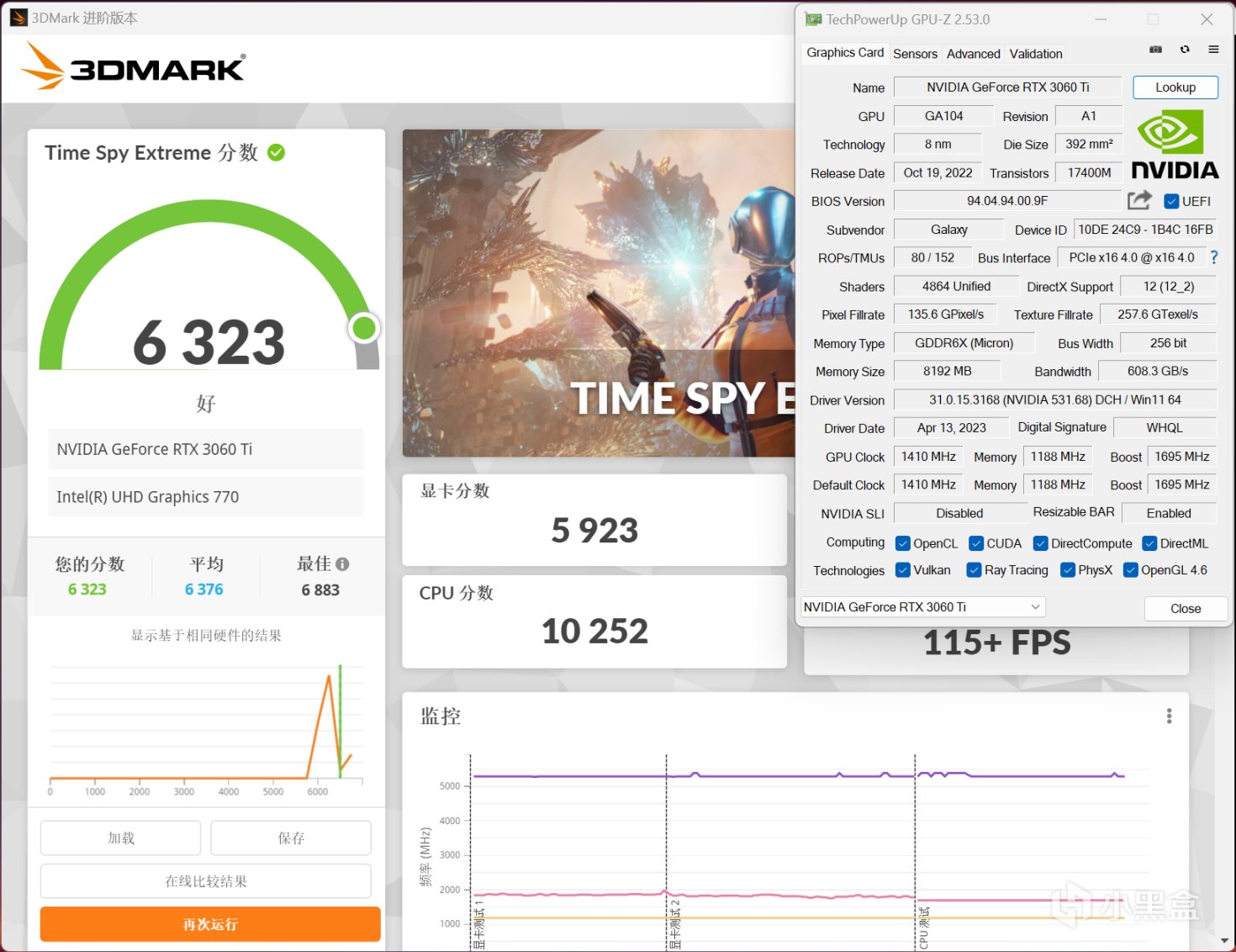 3DMark Time Spy Extreme跑分,影驰RTX 3060 Ti GDDR6X 金属大师OC显卡分数为5923