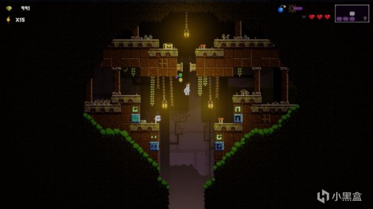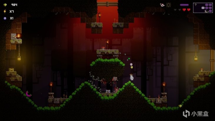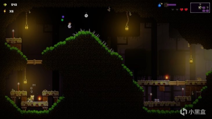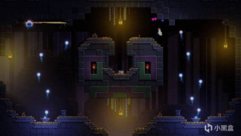 除了这种谜题外,游戏还提供了我个人认为相当难的机关解谜。初始区域中的机关解谜比较简单,只要知道机关的检测机制,合理利用子弹引诱攻击或者火把烧掉倒刺就可以无伤完成机关谜题。但在后续区域中,机关解谜难度直接上升一个大难度,通向宝箱的道路上铺满了机关地刺,研究了很久还是没弄明白机关机制。我很喜欢这种通过解谜获取道具的方式,像在跟游戏制作者进行博弈。虽然获取道具难度被大大提高了,但成功攻克之后的成就感也是无以伦比的。此外,道具还可以在地图中存在的宝箱或者挑战怪物房间获取。