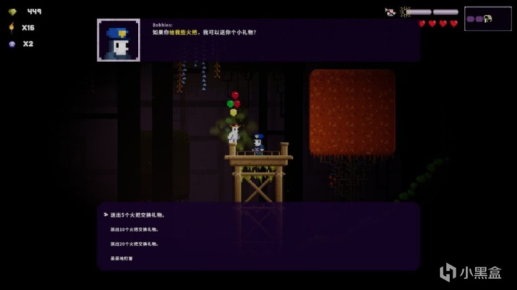 一是因为游戏引入了一个“追逐”设计,随着时间的流逝,游戏会出现“黑暗风暴”从下到上吞噬游戏世界。这些被风暴吞噬的世界在地图上的显示会变为红色,玩家进入到该房间一定时间后会扣血。因此,玩家虽然可以尝试探索全部房间,但这实际上是一个奖励与惩罚之间的博弈。