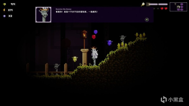 除了肉鸽元素带来的乐趣外,长夜之歌还通过NPC和剧情设计给玩家带来一些额外的游戏乐趣。在游戏中,有各种NPC,例如看守冒险者的守门人,尽管玩家就是冒险者但显然他没有看出来,并且还会用道具来换取火把。还有奶牛农场主,家里立了一堆顶部有着牛牛头的石碑。玩家每次在地图上遇到一个奶牛,这里就会有一个牛头碑发亮,激活后会出现一段心灵鸡汤。奶牛那里还有一个不错的设定,第一次摸牛头会给玩家回复一点生命值。