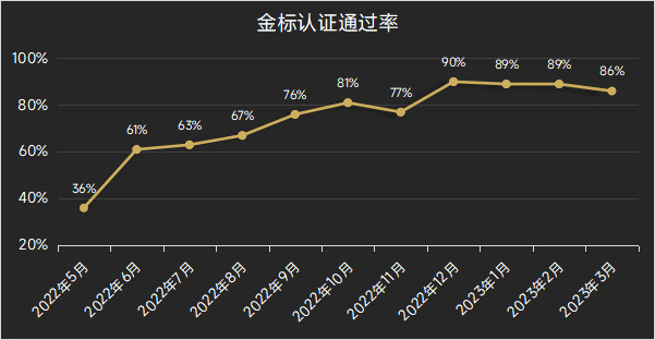 根據官方最新數據,金標聯盟 3 月認證通過率 86%(認證中版本不計算在內),環比上月下降 3%;認證版本環比上月增加 33%。