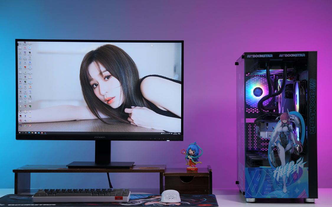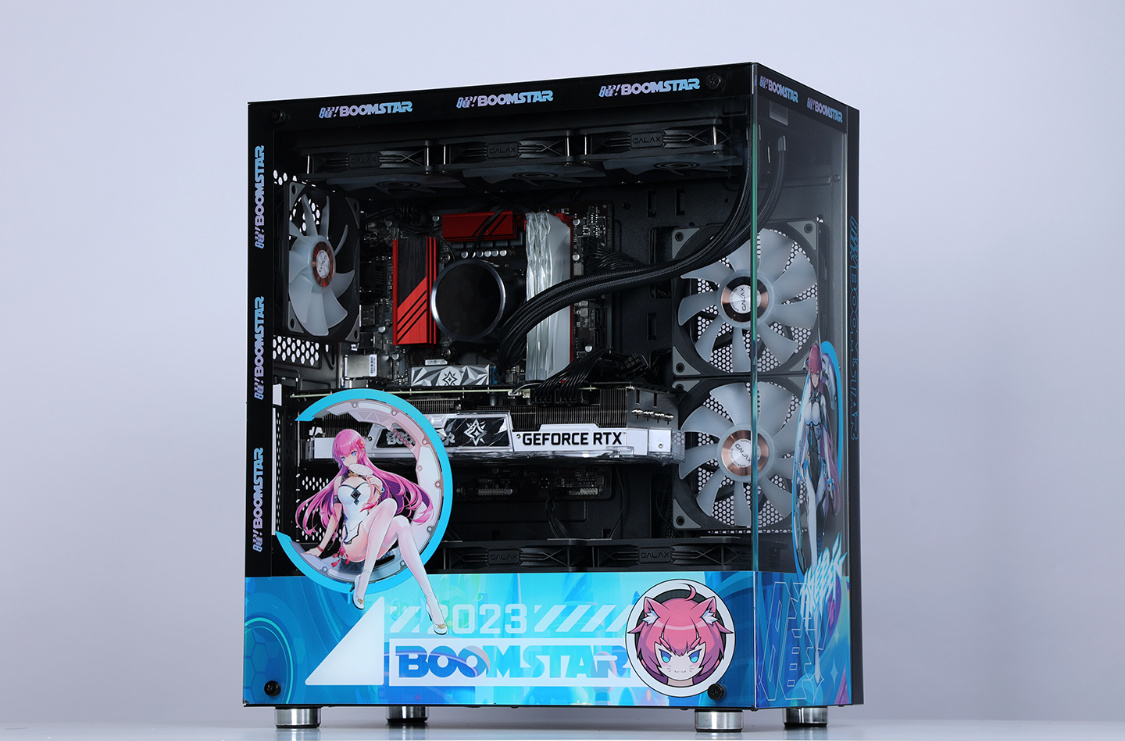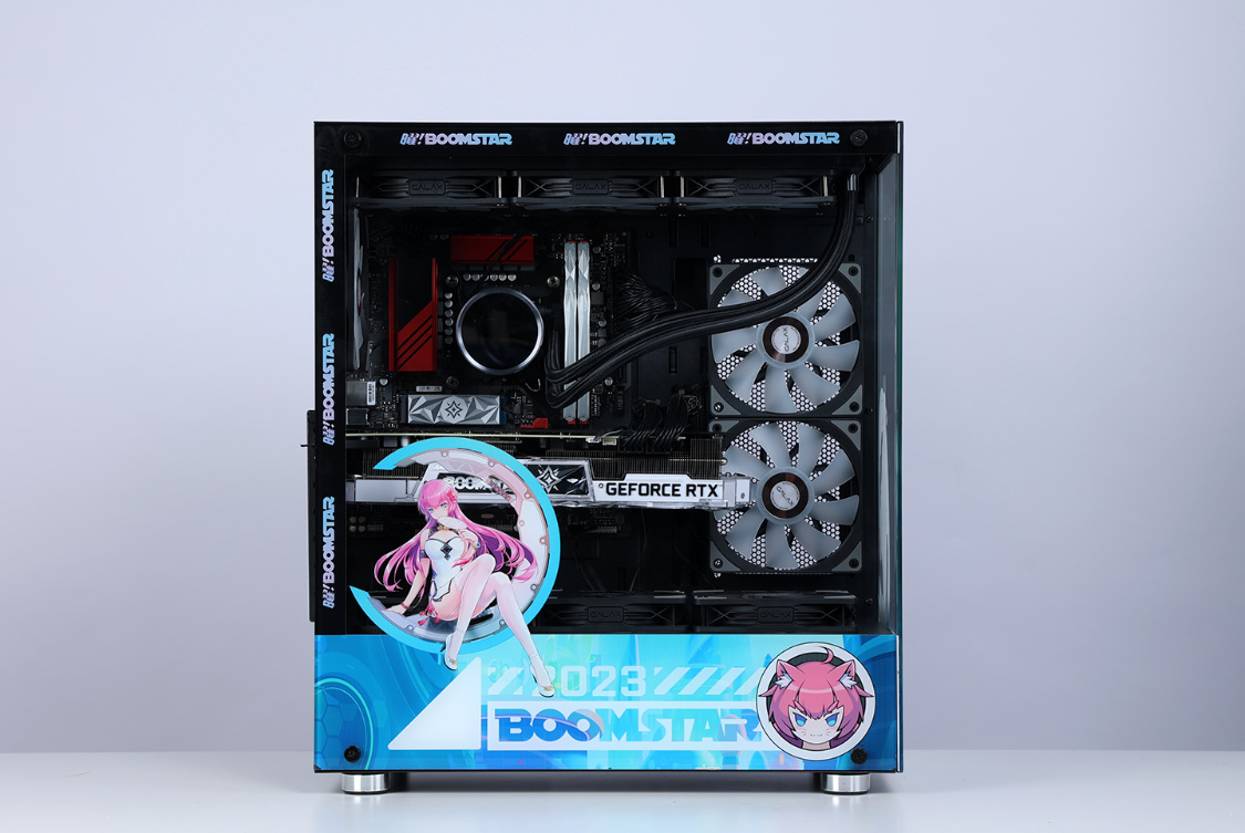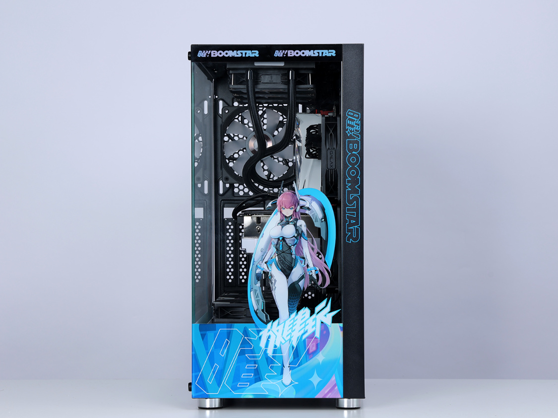 機箱選擇的是這兩年的審美主流海景房機箱,影馳魅影星曜娘黑色定製版機箱。這樣的機箱,最終的整機效果,也絕對能讓你滿意。中塔規格,但兼容性非常優秀,270°全景無遮擋設計,可以從多個角度清楚的看到機箱內部的硬件狀態。全新星曜娘形象塗裝,直接將機箱顏值拉高到另一個維度。