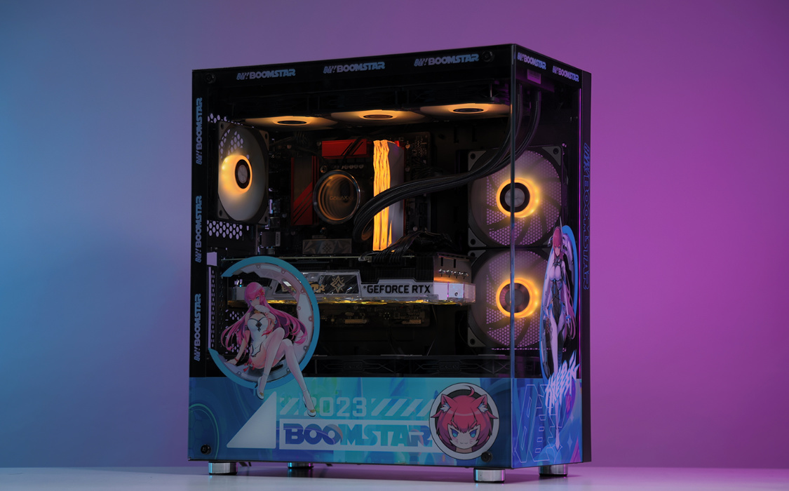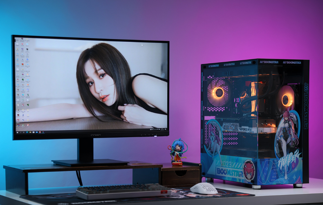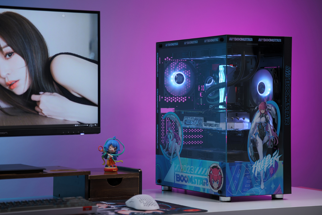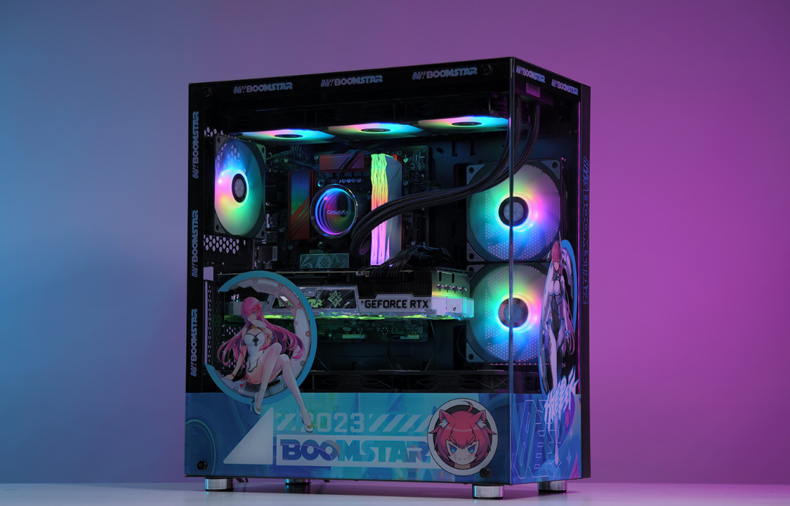 機箱選擇的是這兩年的審美主流海景房機箱,影馳魅影星曜娘黑色定製版機箱。這樣的機箱,最終的整機效果,也絕對能讓你滿意。中塔規格,但兼容性非常優秀,270°全景無遮擋設計,可以從多個角度清楚的看到機箱內部的硬件狀態。全新星曜娘形象塗裝,直接將機箱顏值拉高到另一個維度。