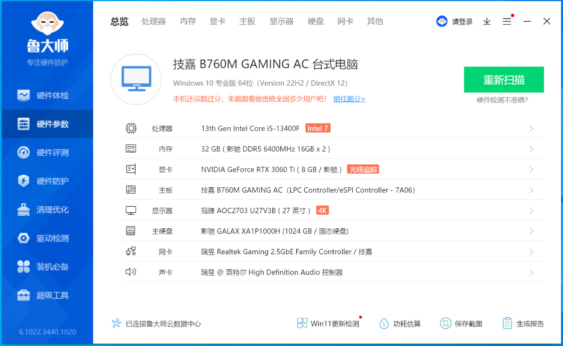 完整配置清單:i5-13400F處理器、B760M魔鷹主板、影馳星曜DDR5-6400MHz內存、影馳星曜X4 1T M.2固態硬盤、影馳RTX 3060Ti星曜 G6X OC顯卡、影馳魔影Plus 360R一體式水冷、影馳電競大師GL-850金牌全模組電源、影馳PHANTOM(魅影) 星曜娘黑色定製版機箱,影馳流影E3散熱風扇*6....