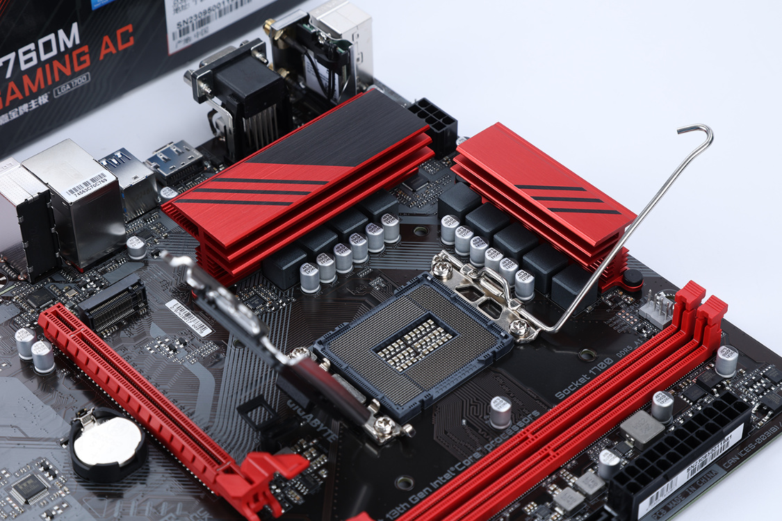 主板方面,選擇的是一款千元檔的DDR5主板,B760M魔鷹,紅黑配色個性十足,配置不高,但對D5內存兼容不錯。