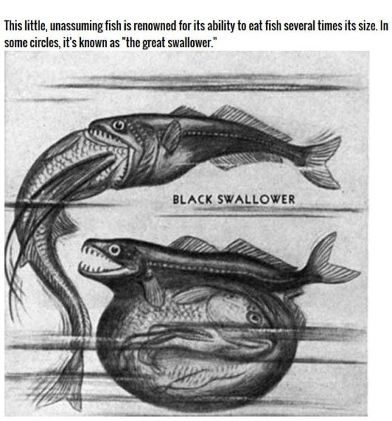 这些看起来其貌不扬的鱼儿们,以能吞下比自己大得多的鱼而闻名。