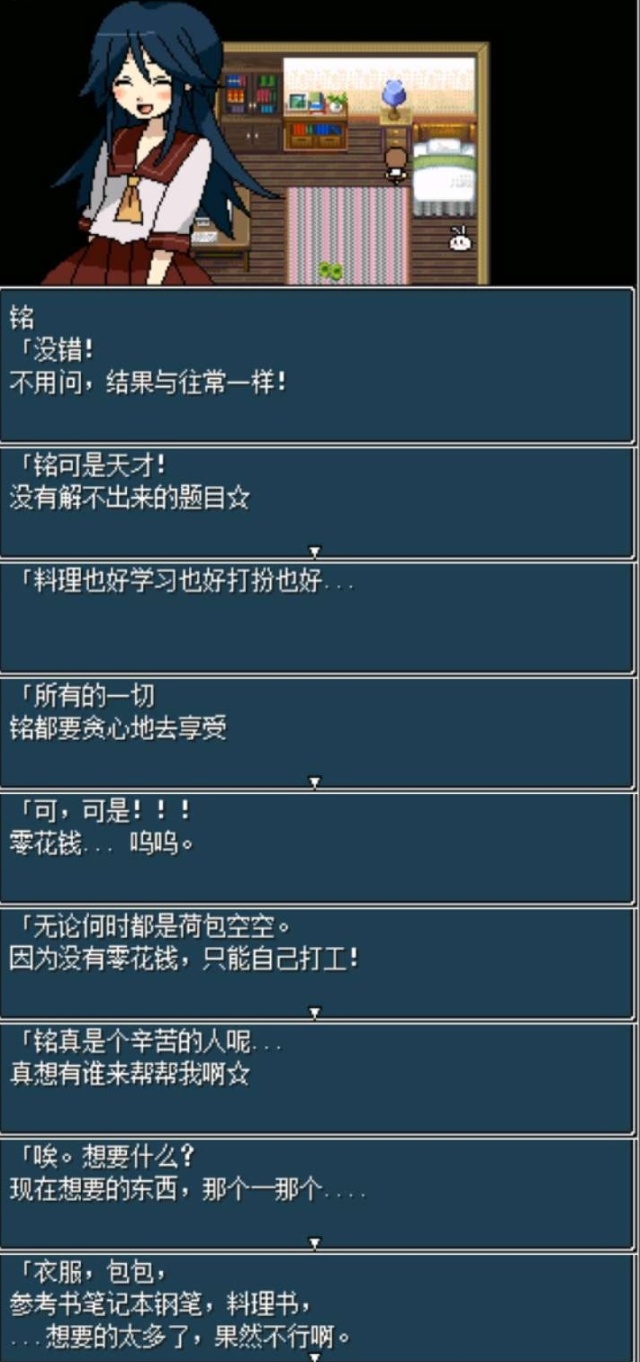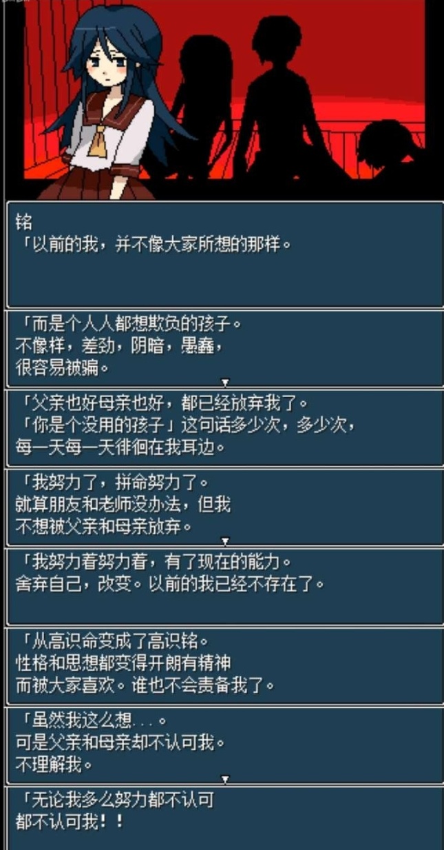 少女也愤恨着这样的环境,但是她也痛恨自己的无能为力。她努力学习,努力锻炼,练习打扮,学着和人交流,最终变成了大家熟悉的铭学姐。