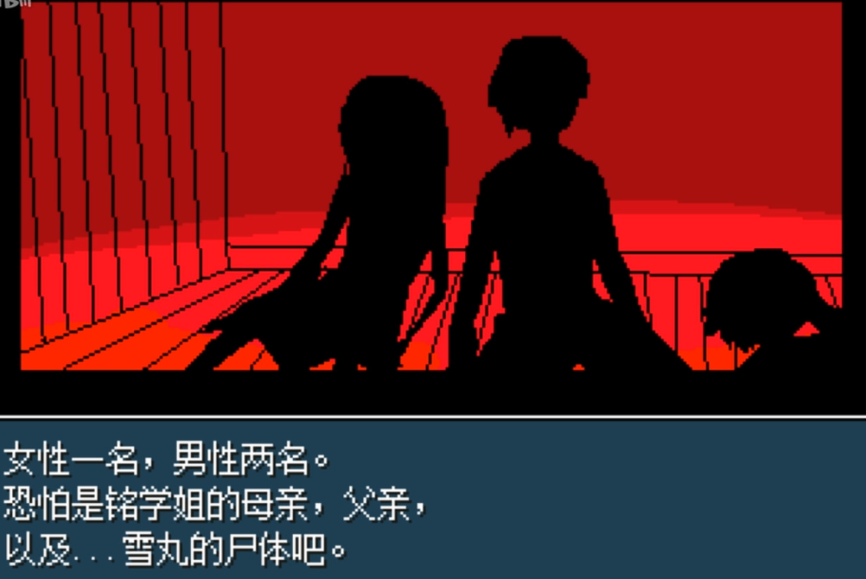 衣柜里的景象让人作呕。拉开门的一刻,一些东西就掉了出来,比如诡异的针管,注射器,还有拷问道具之类。衣柜深处更是横陈着几句尸体…恐怕就是父母和雪丸吧。