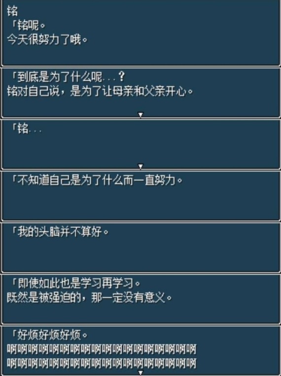 冲击性的文字再次出现在屏幕上。先不说学姐自爆一样的发言,学姐与父母的关系好像不是那么融洽,这已经超出了真太郎想知道的范畴,他有种回不去的感觉。但是事已至此,只能往下看了。