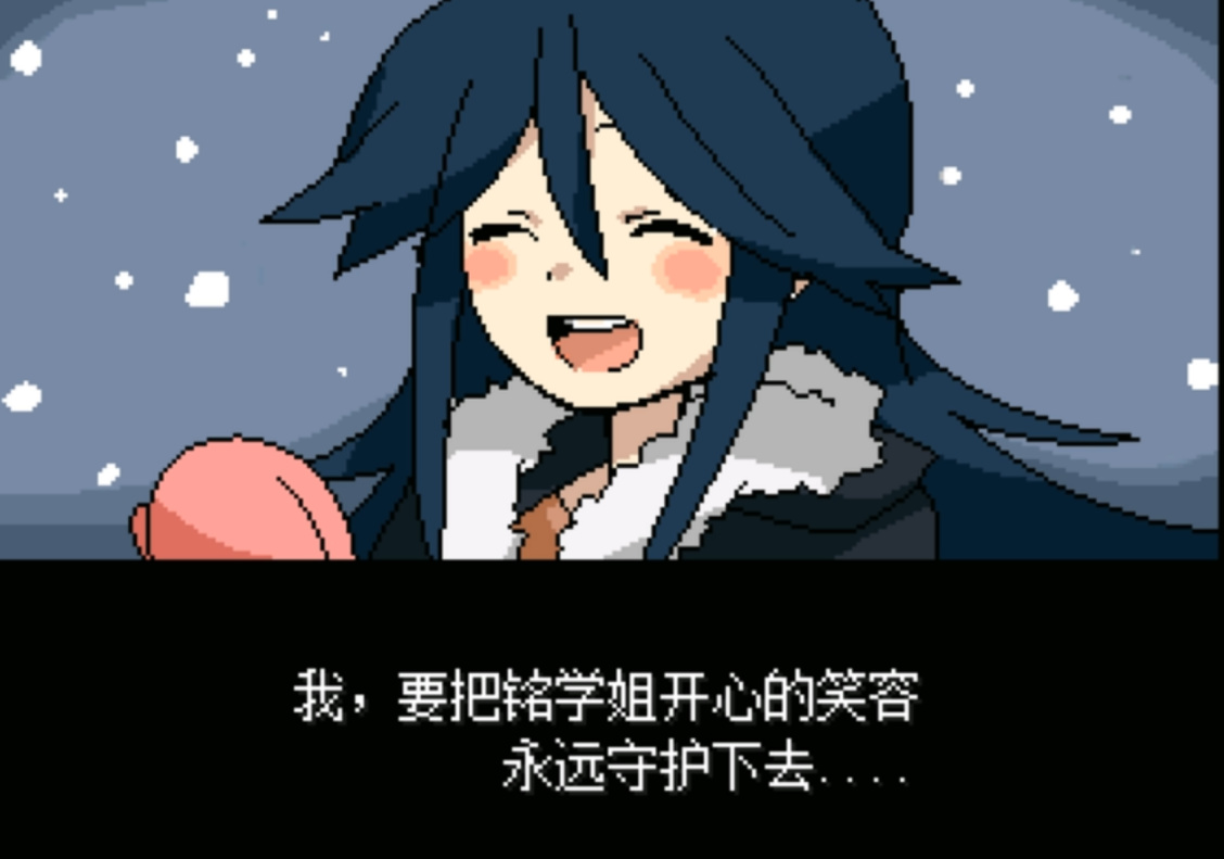 真太郎站在那里,看着像小孩一样在雪地玩耍的学姐,仿佛看到了她小时候的样子。看着学姐的笑脸,真太郎暗暗下了决心—