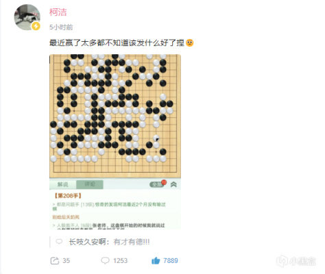 2023年4月25日,LG杯預選賽決賽,柯潔在局勢大優的情況下,再次上演經典好戲,選擇"彈幕最多的下法",最終驚險取勝,玩的就是心跳,柯潔也成功拿下12連勝,晉級LG杯本賽!另一邊,戰鷹與世界冠軍周睿羊九段連麥,節目效果拉滿,網友笑稱以羊老師的抽象功底足以加入組建2999工作室,直播界的圍棋勢力正在不斷擴大!