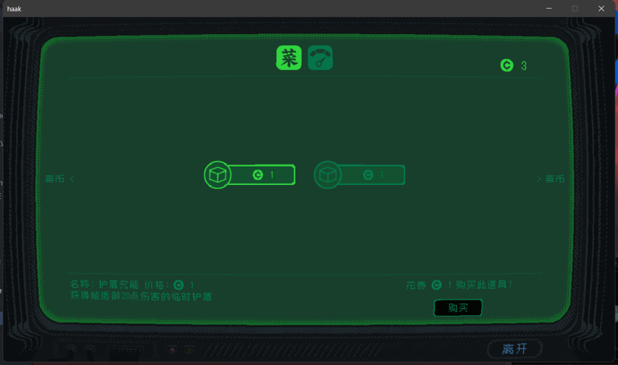 在哈克里,角色一旦死亡,系统会给你一颗“莱币”,在游戏里摆放消费机器的地方,你可以使用“莱币” 购买一些降低游戏难度的道具或者能力。