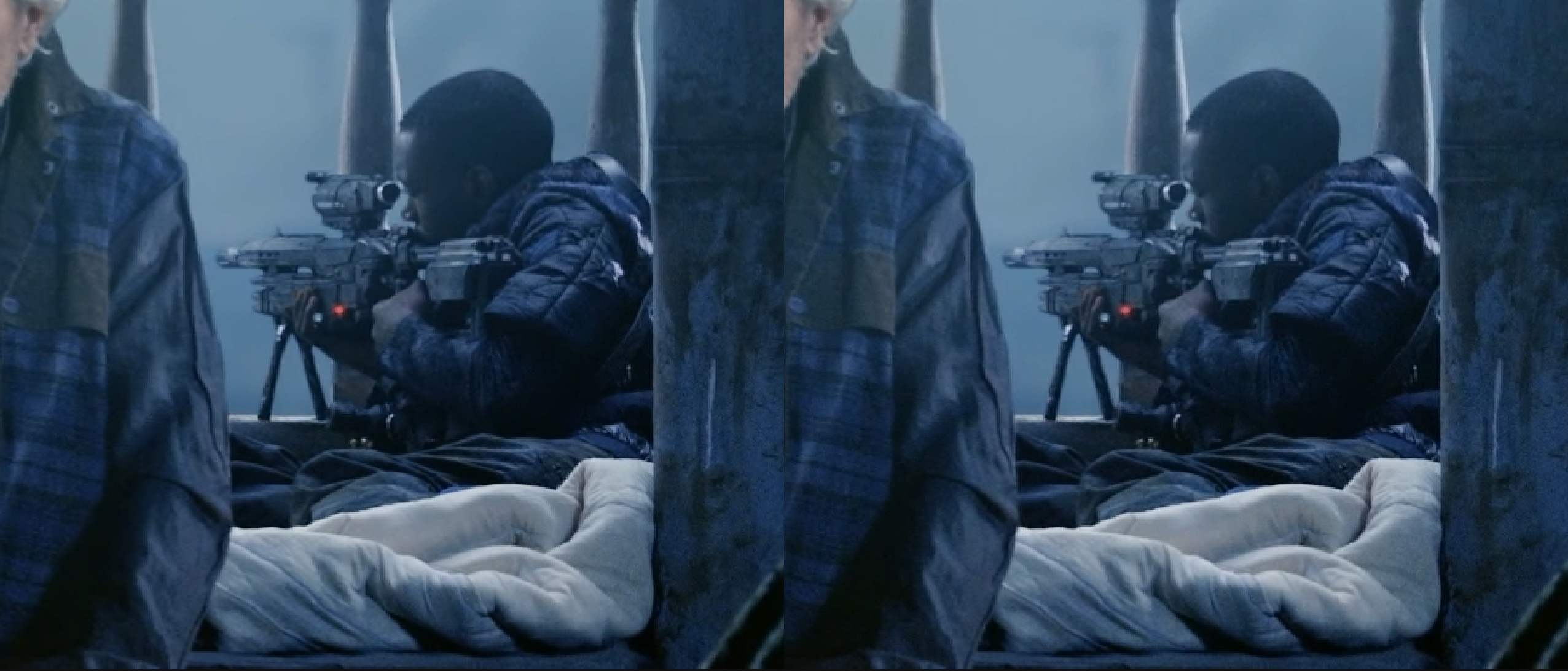 ▲怕圖片經過網站壓縮後畫面差異變得不明顯,我這裏還做了細節放大,左側琴酒的手(RTX 視頻增強技術開啓)細膩光滑,右側琴酒的手(RTX 視頻增強技術關閉)則毛刺明顯,正是這一顆藥丸,纔開啓了死神小學生的傳奇故事。