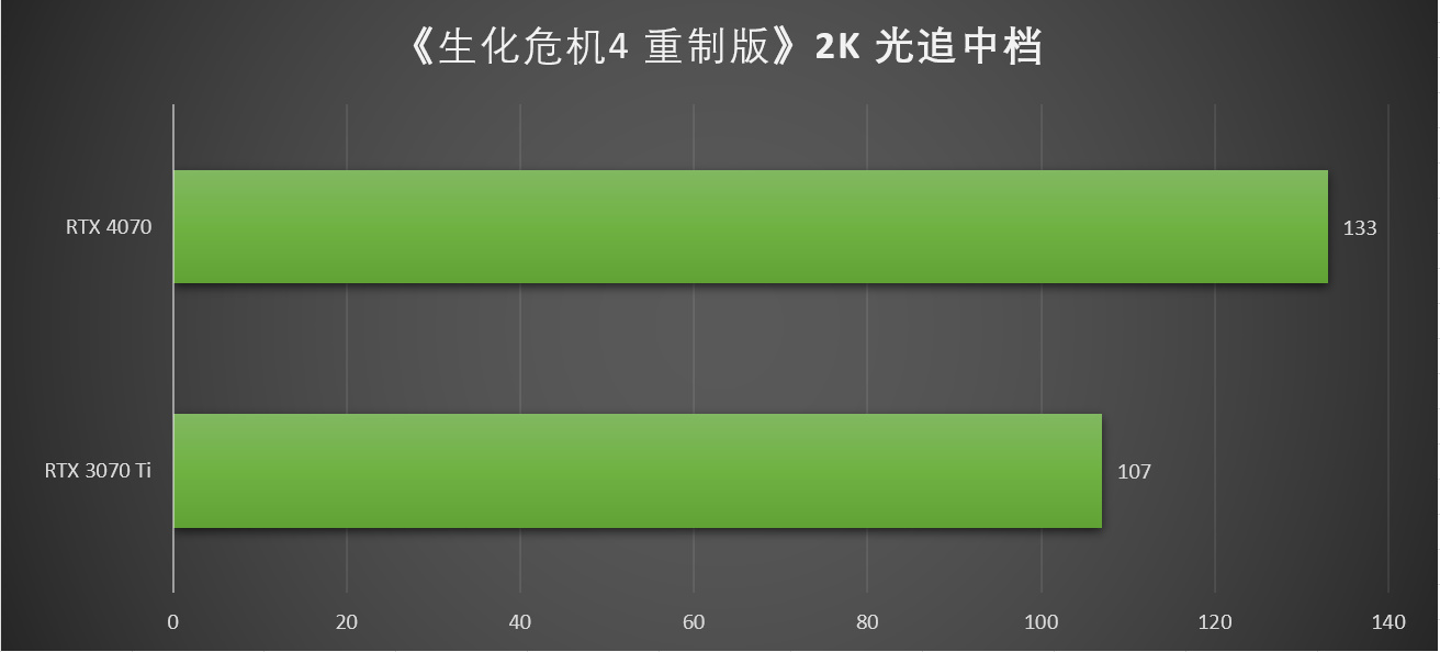 首先,RTX 4070是很具有性價比的2K遊戲顯卡,遊戲性能相比3070Ti提升20%,DLSS3提升70%。 有了DLSS 3的加持,在絕大多數遊戲中,即使畫質最高,光追全開,RTX 4070依舊能夠提供100 FPS的遊戲幀率,部分優化好或光追應用不多的遊戲甚至可以摸到144 PFS甚至160FPS 這兩個電競顯示器的峯值刷新率,而且能效比爆高,散熱也毫無壓力。