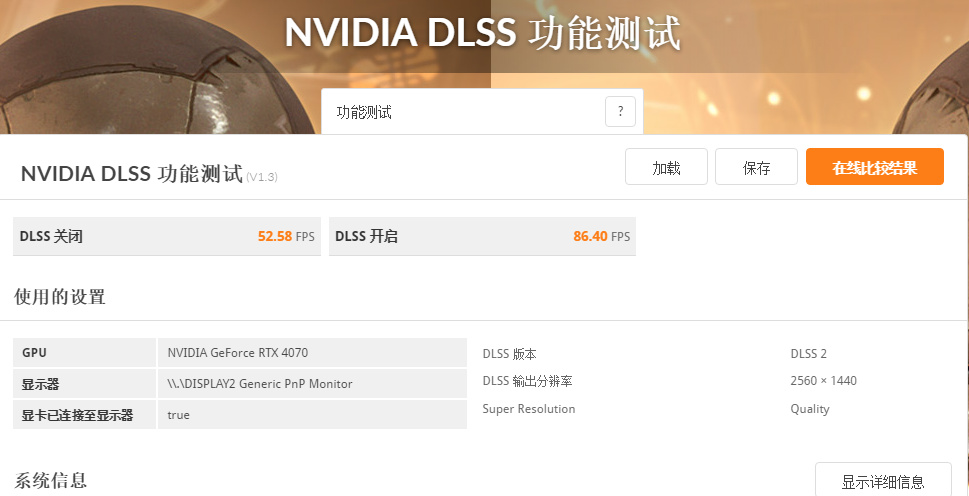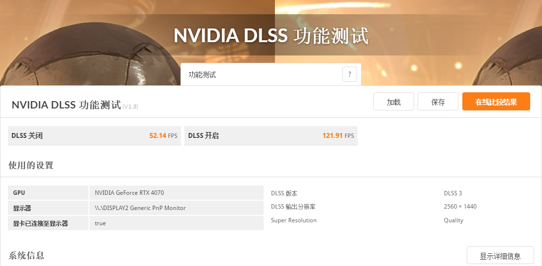 ▲3D Mark DLSS test是專門測試顯卡DLSS性能的基準測試,其測試原理爲連續進行兩次的3D Mark Port Royal 光線追蹤 基準測試,第一次爲關閉DLSS功能,第二次爲開啓DLSS功能,通過遊戲幀數變化來測試DLSS功能對遊戲性能的提升,目前3D Mark DLSS test 1.4版本已經支持DLSS 3的潛在幀生成技術。