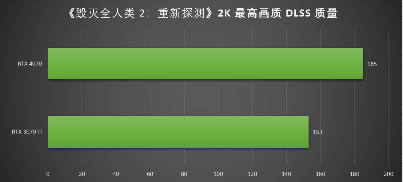 ▲經實測,iGame GeForce RTX 4070 Vulcan OC在DLSS 3模式下平均幀率爲185FPS,是RTX 3070 Ti在開啓DLSS 2時平均幀率153 FPS的121%。