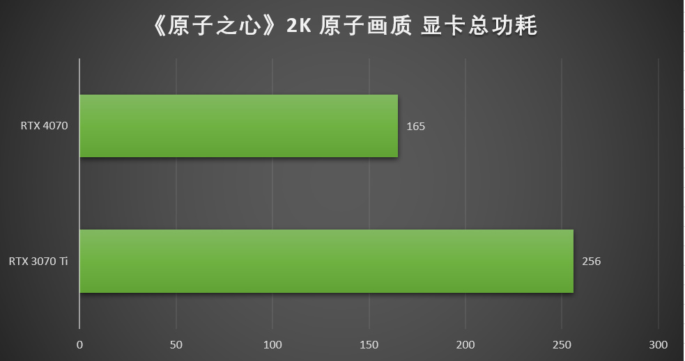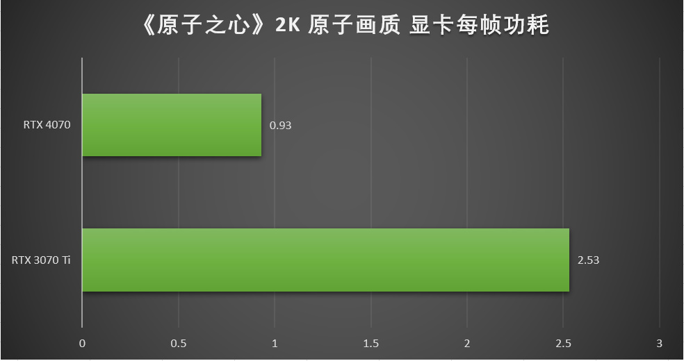 ▲在《原子之心》,2K 原子畫質下,iGame GeForce RTX 4070 Vulcan OC的總功率是RTX 3070 Ti的64.4%,每幀功率是RTX 3070 Ti的36.7%。