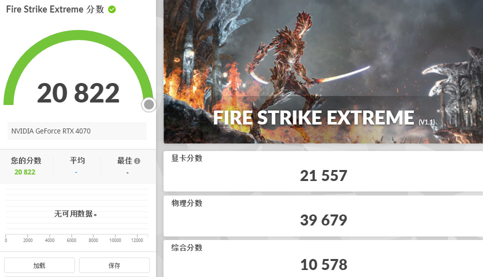 ▲在3D Mark Fire Strike Extreme中,iGame GeForce RTX 4070 Vulcan OC的總分爲20822分,顯卡得分爲21557分。