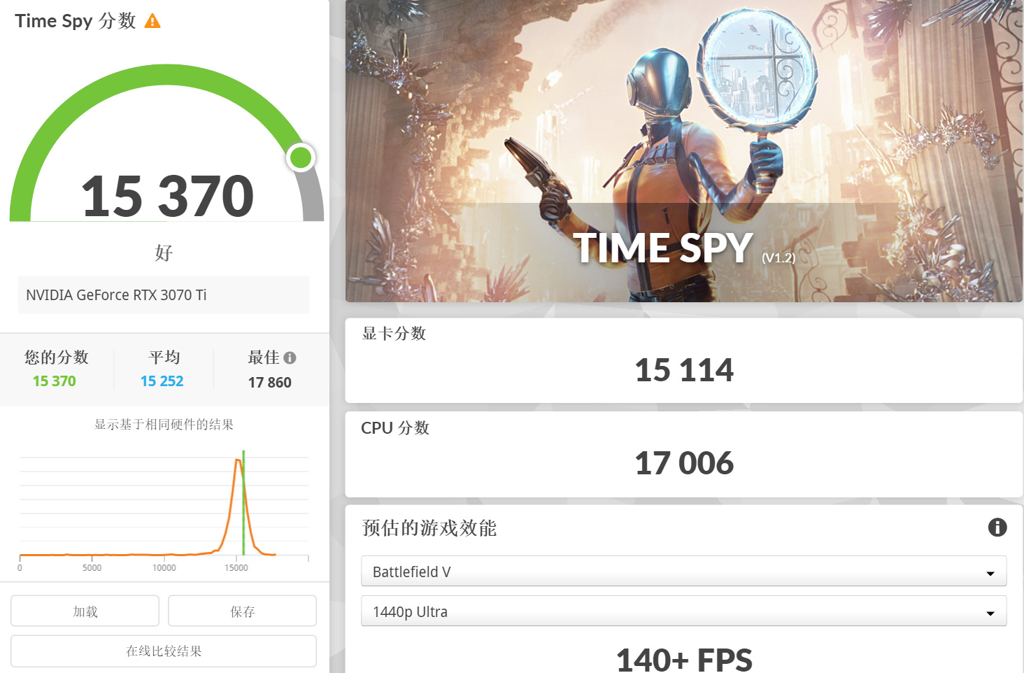 ▲而RTX 3070 Ti的總分爲15370分,顯卡得分爲15114分。 iGame GeForce RTX 4070 Vulcan OC的TIME SPY顯卡相較於RTX 3070 Ti提升了21.6%。
