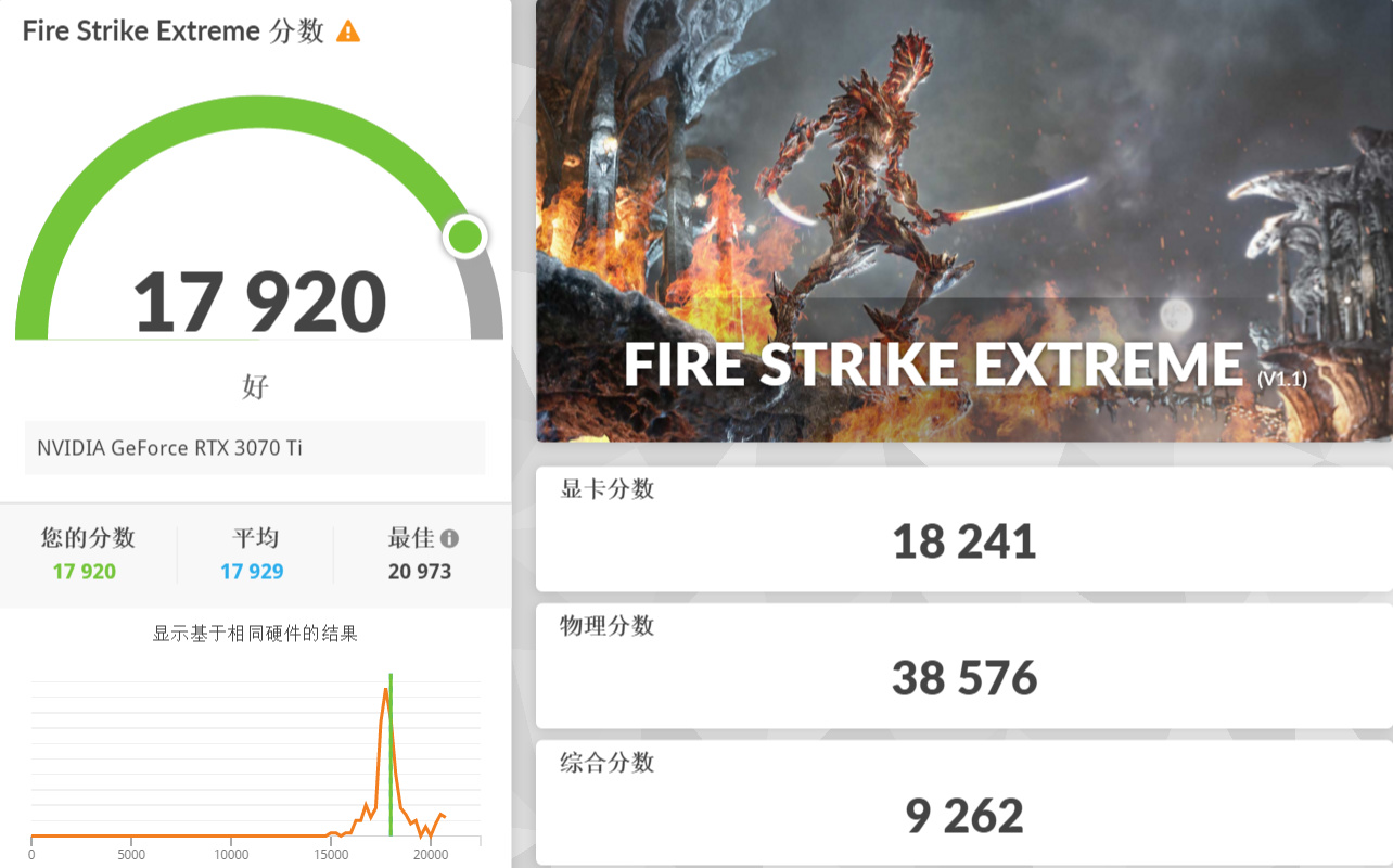 ▲而RTX 3070 Ti的總分爲17920分,顯卡得分爲18241分。 iGame GeForce RTX 4070 Vulcan OC的Fire Strike Extreme顯卡相較於RTX 3070 Ti提升了18%。