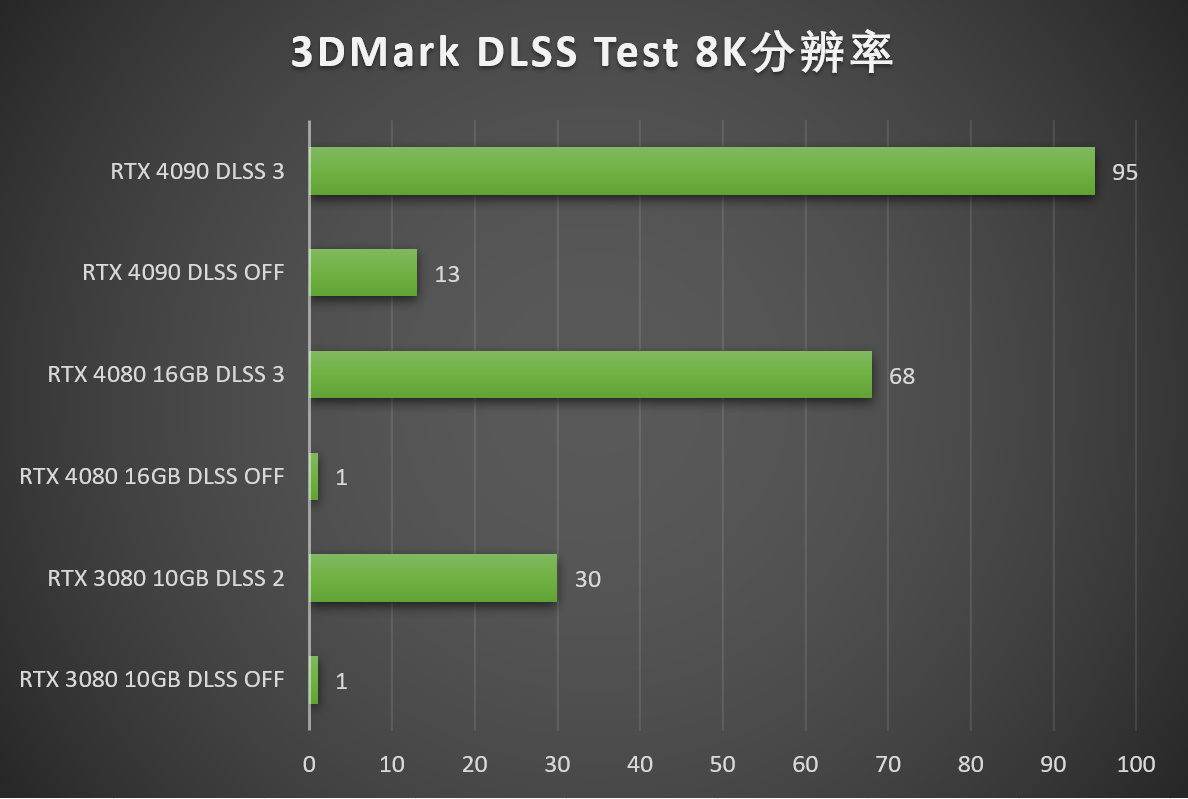 另外,3D Mark DLSS test可在不使用8K显示设备的情况看下进行8K游戏的帧数测试,所以家境贫寒如黄昏我,也可以测试显卡的8K分辨率游戏表现了。