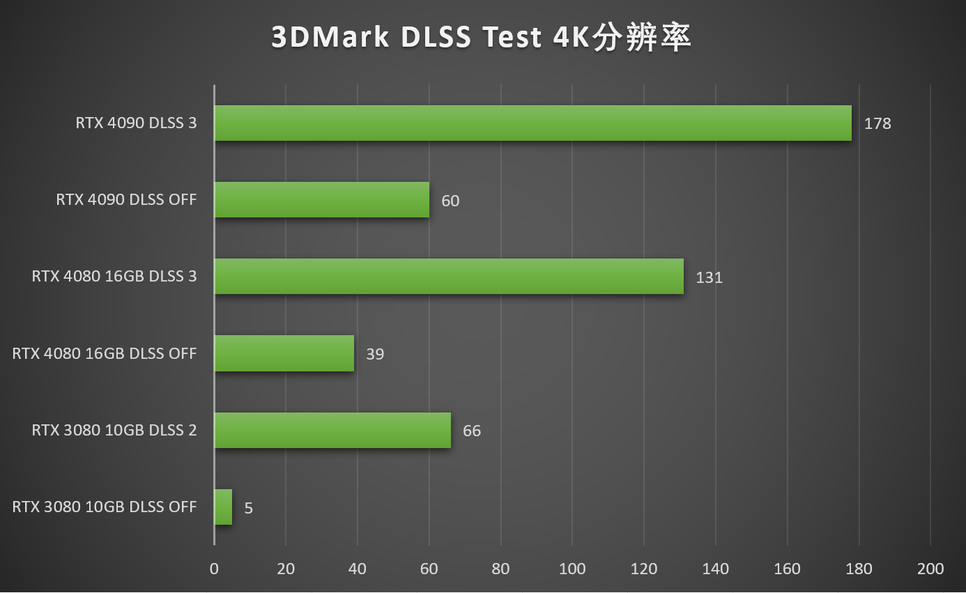 通过3D Mark的测试,我们基本得知了,在4K分辨率下,iGame GeForce RTX 4080 16GB Vulcan OC的游戏性能基本上可达到RTX 3080 10GB的1.5倍以上,这还是未开启DLSS的情况下的结果,紧接着,我们就来测试一下两款显卡在DLSS开启后的性能表现。