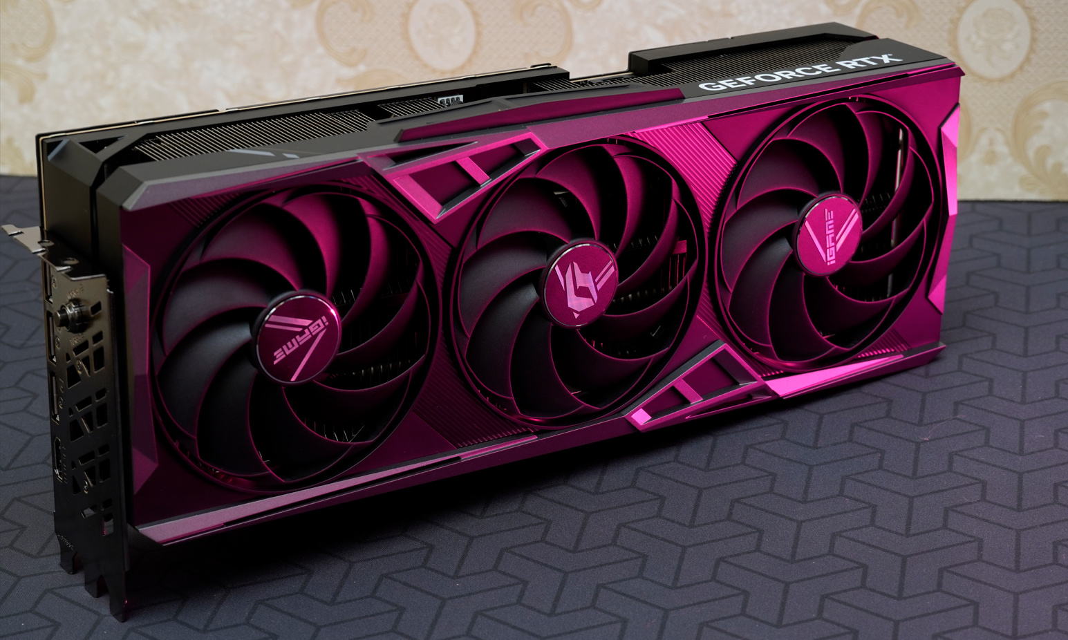 全新iGame GeForce RTX 4080 16GB Vulcan OC相较于上代火神拥有更为凌厉的造型,独特的锖铁色金属外骨骼更显凶悍,为其强劲的性能做出警告。作为后赛博时代的高端硬件,系列经典的锐利三角元素也将完美传承。漆黑的底色体现了它低调的个性,打造锋锐冷酷的高端硬件。9翼扇叶如镰刀般锋利厚实,散热性能甚至比前代13翼扇叶的风扇更加强劲,而且整体也显得更加简洁。