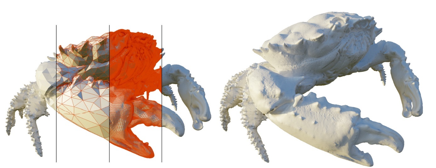 ▲而面对珊瑚蟹这种极不规则,超多个平面(三角形)的物体,则需要DMM引擎来提升光追性能了。