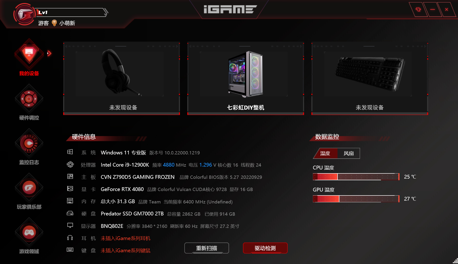 ▲12代酷睿首发时我便拿到了i9-12900K,虽然现在13代酷睿测测评已经解禁,为了方便大家比较RTX 4080 16GB与RTX 4090的性能差异,我继续使用12代酷睿来进行测试。