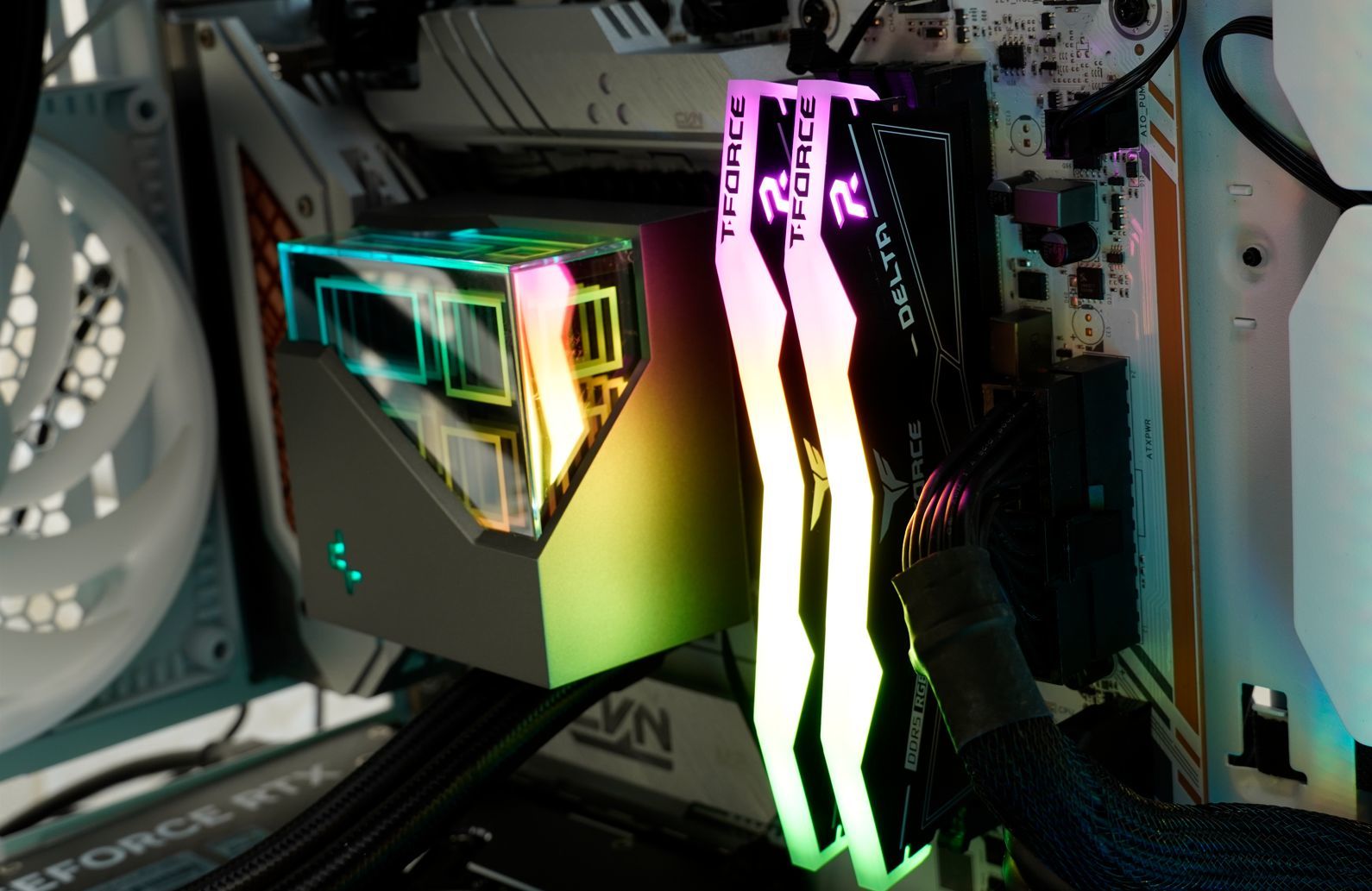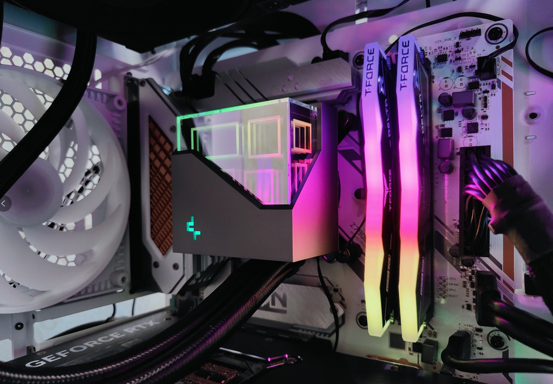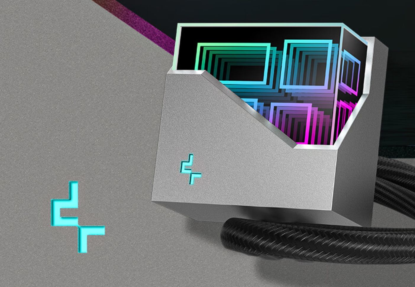 ▲水冷采用的是九州风神(DEEPCOOL)的冰魔方360,这款水冷最值得说的便是这款多维无限镜的冷头了,真的是目前最耐看的冷头之一,必须得给设计师点个赞。