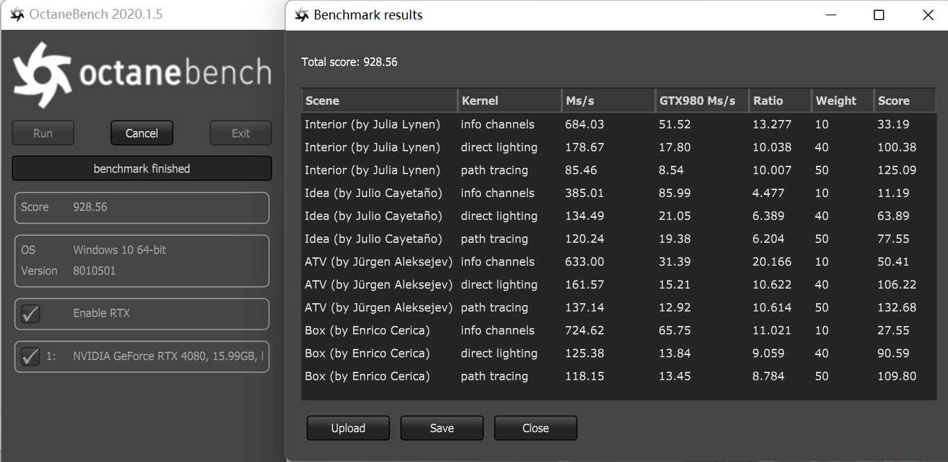 ▲OctaneBench是目前最流行的GPU渲染基准测试之一,其内置了一系列渲染测试。