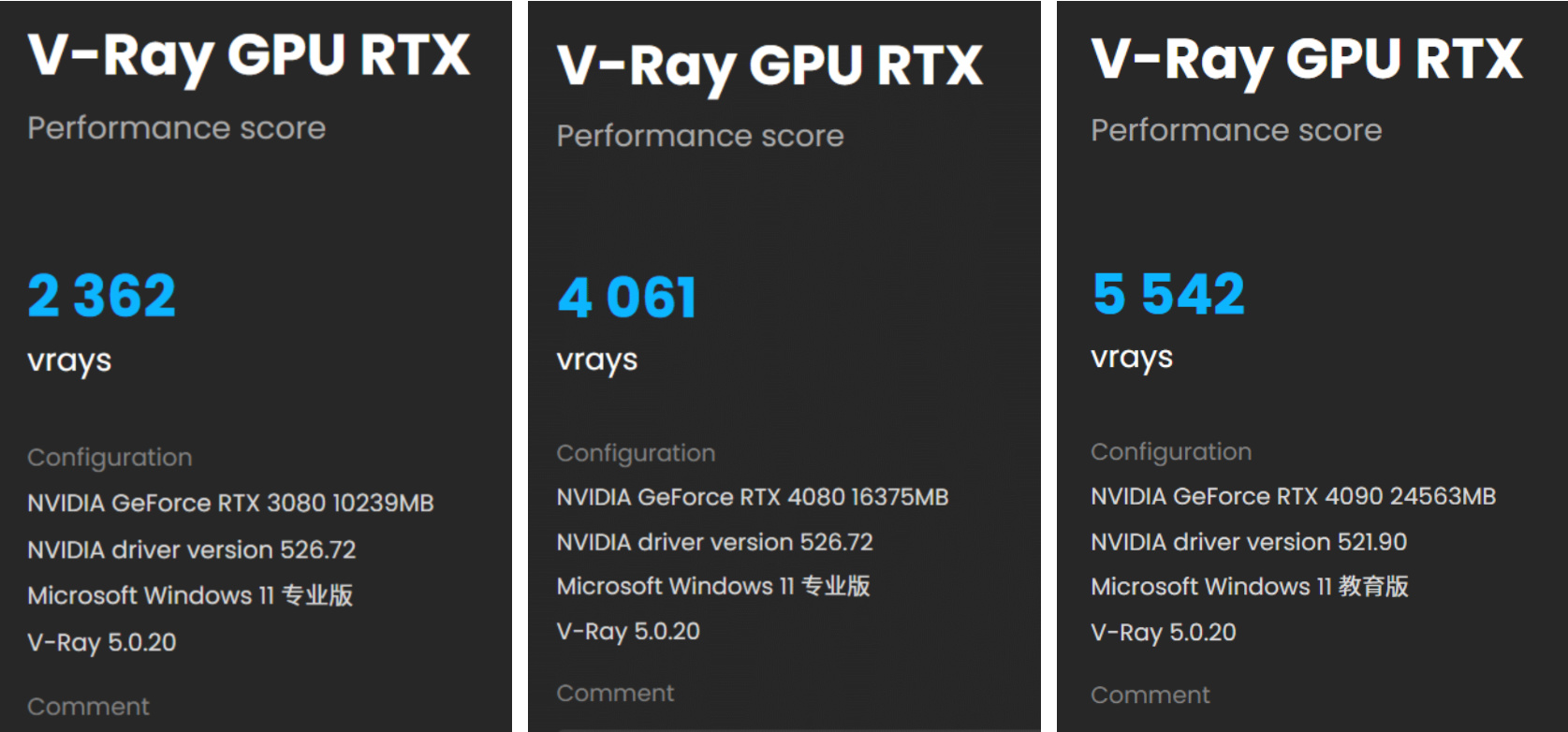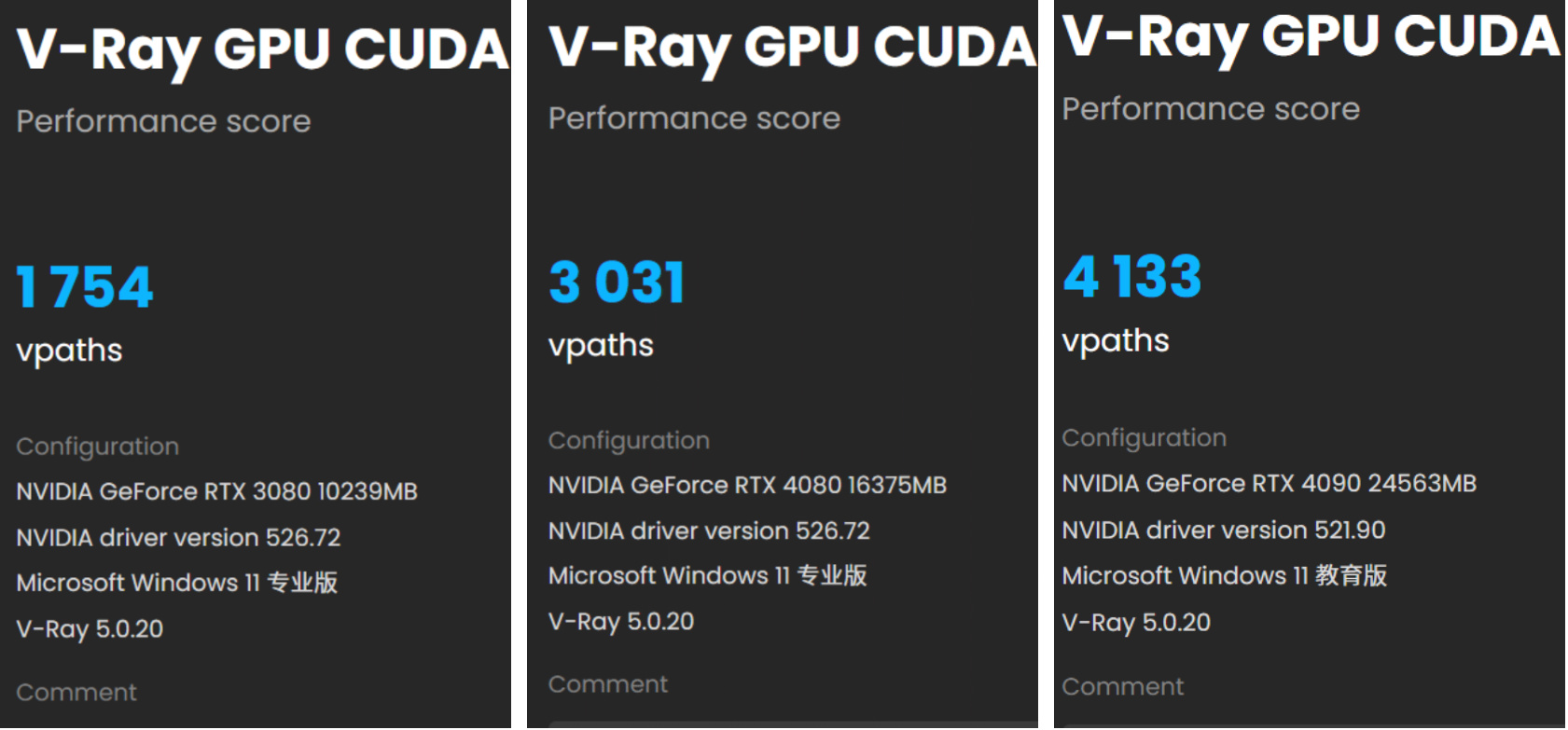 这里要说明一点,RTX 4090在测试时,使用的驱动版本要比本次测试稍老,所以分数上可能差异比较大,故仅供参考。