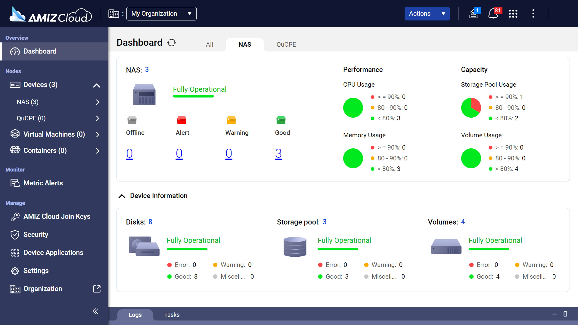 今年上半年威联通出了官方版本的虚拟机,用户可以很方便的在AWS、腾讯云和阿里云等主流VPS上部署虚拟机版本的威联通NAS,AMIZ Cloud云端中控系统的作用是管理和访问多台威联通NAS,对个人用户没啥意义,对有多台NAS的群组用户而言是刚需工具。