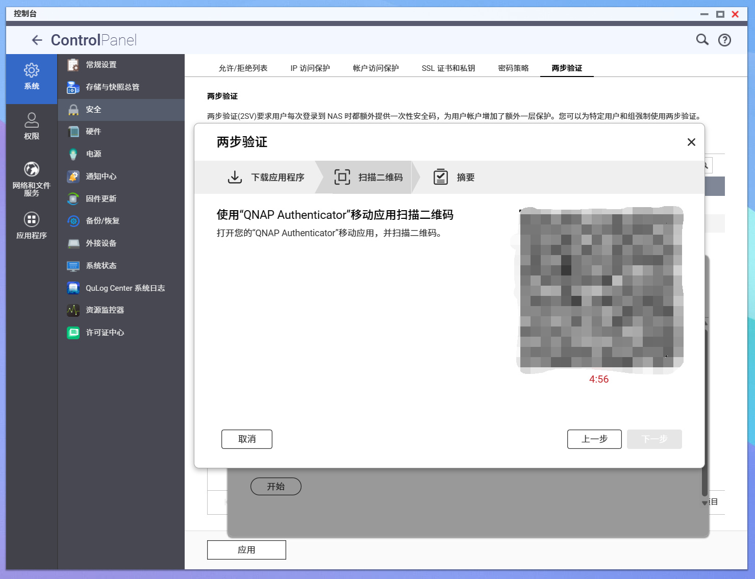 现在的2SV验证方式有点类似于Steam的手机令牌,手机上下载QNAP Authenticator之后一路扫码绑定即可,后续在新设备上登录NAS不用再输入访问密码,直接用App扫码即可。