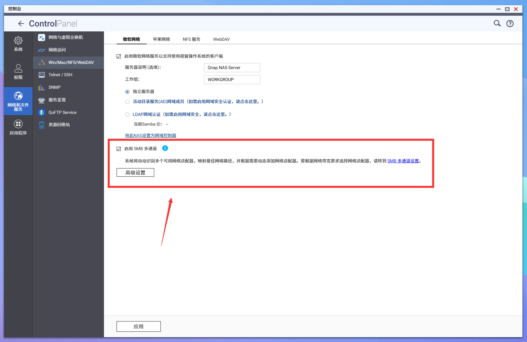 本次QTS 5.1升级了SMB版本,虽然还是SMB3.1但支持到了多通道传输协议,也就是内部调用多个网卡提升传输速率,可以形象的理解成需要时才会自动网口聚合的一项技术,对万兆拓扑+Windows用户来说提升非常大,比如TS-264C的双2.5Gbps网口可以达到625MB/s的速率。
