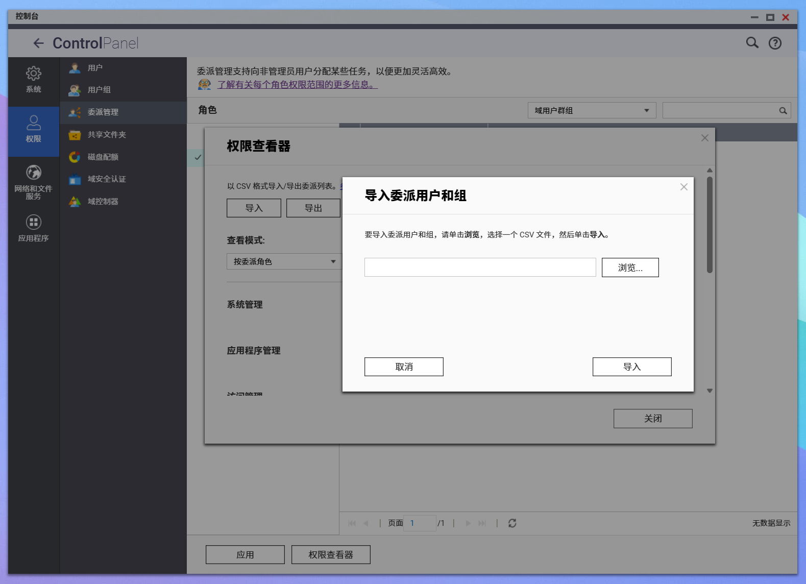 通过委托管理,NAS管理员可以按照各个使用者的岗位快速赋予对应账号的使用权限,和传统NAS的用户级组管理不同,委托管理可以实现更细分的账号设定,比如权限生效时间、文件夹读写权限等等,同时还支持CSV快速导入并创建账号,相比传统创建方式更加省时。