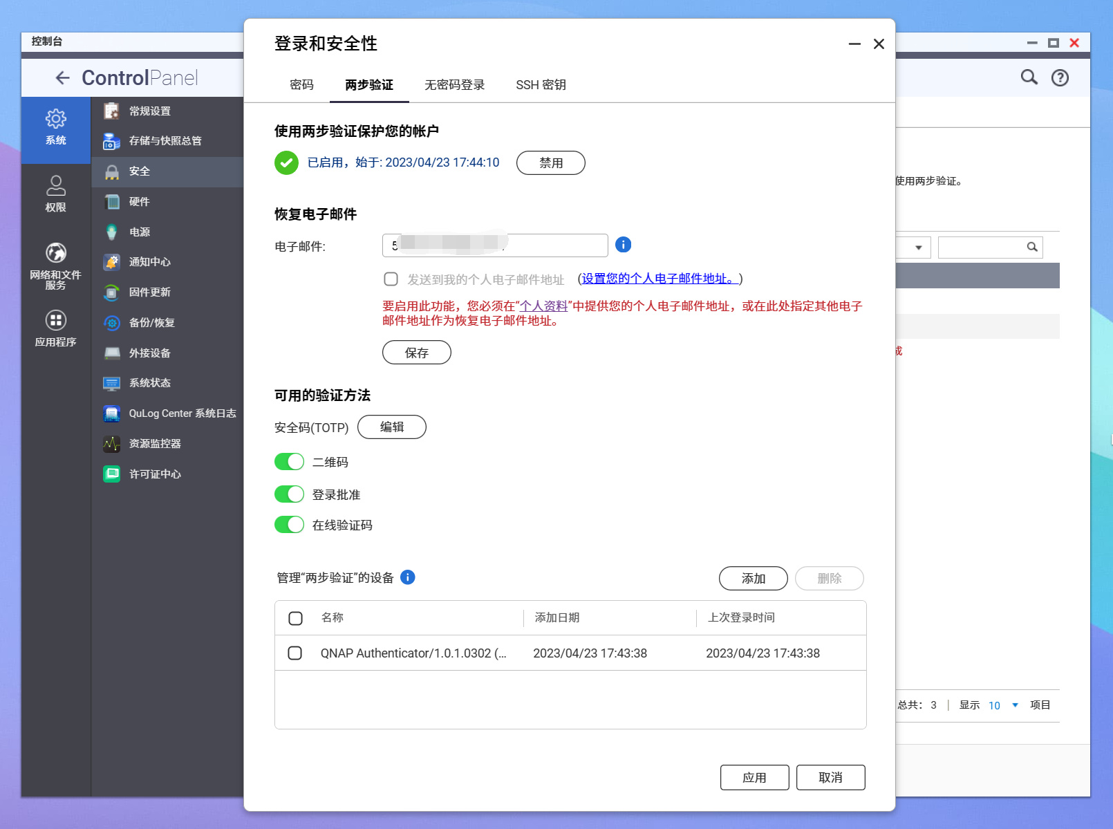 本次QTS 5.1新增的双重验证倒不是新鲜东西,毕竟之前就有手机验证这项功能,本次的2SV只是更改了验证方式,将传统的短信验证改成了App验证。