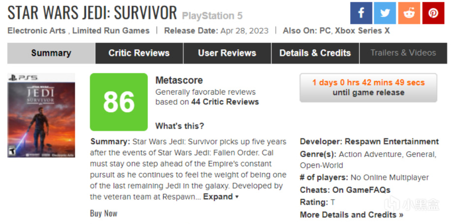 《星球大战:绝地 幸存者》,最新的游戏媒体评分解禁,表现还算不错。Game Informer给到了9.25分,IGN给到9分,MC的均分为86。这个评分算是挺高分了,希望这次PC首发不会翻车。