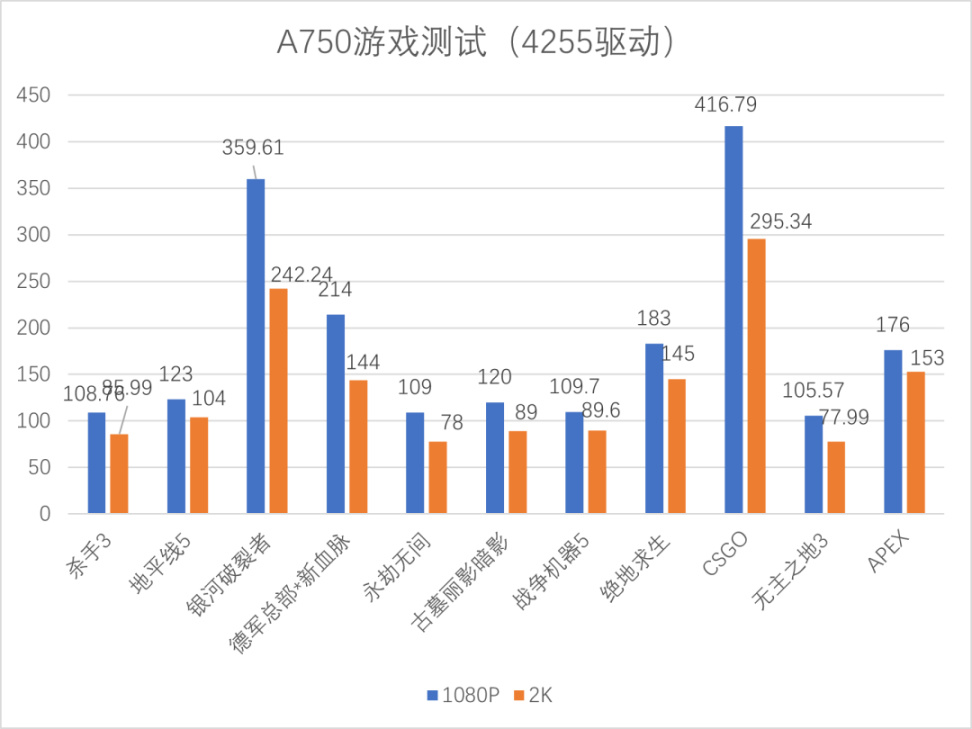 PHOTON W的显卡性能与黑色版本基本一致,因此在游戏帧率上,仅存在微小误差值。在最新正式版驱动4255中,A750 PHOTON 8G OC W和A770 PHOTON 16G OC W均获得了不错的成绩。