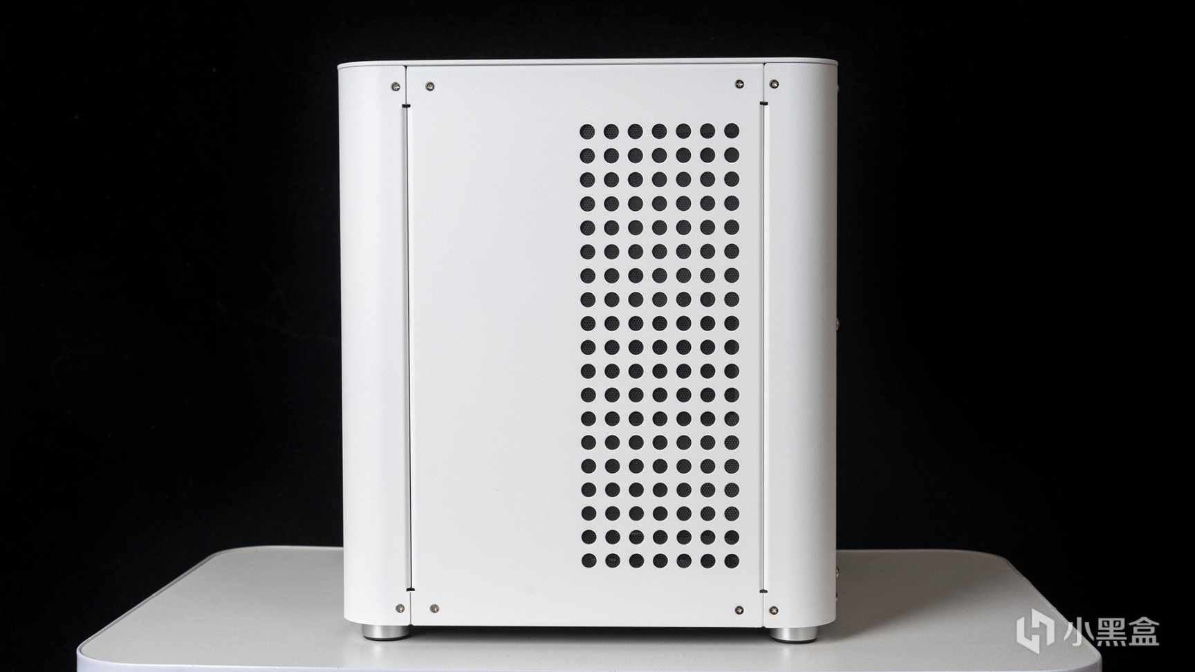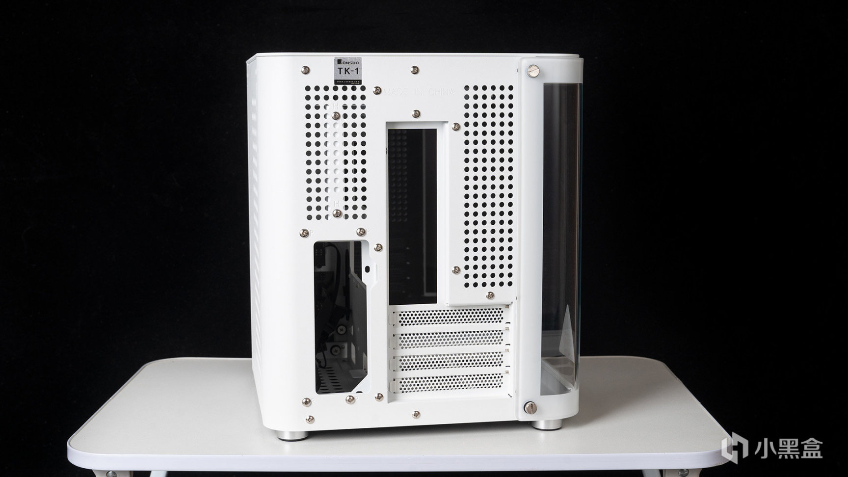 机箱背部拥有大面积圆形散热开孔,便于电源和硬盘位散热,开孔面积还挺大的,形状来看确实会有星舰舱的感觉。