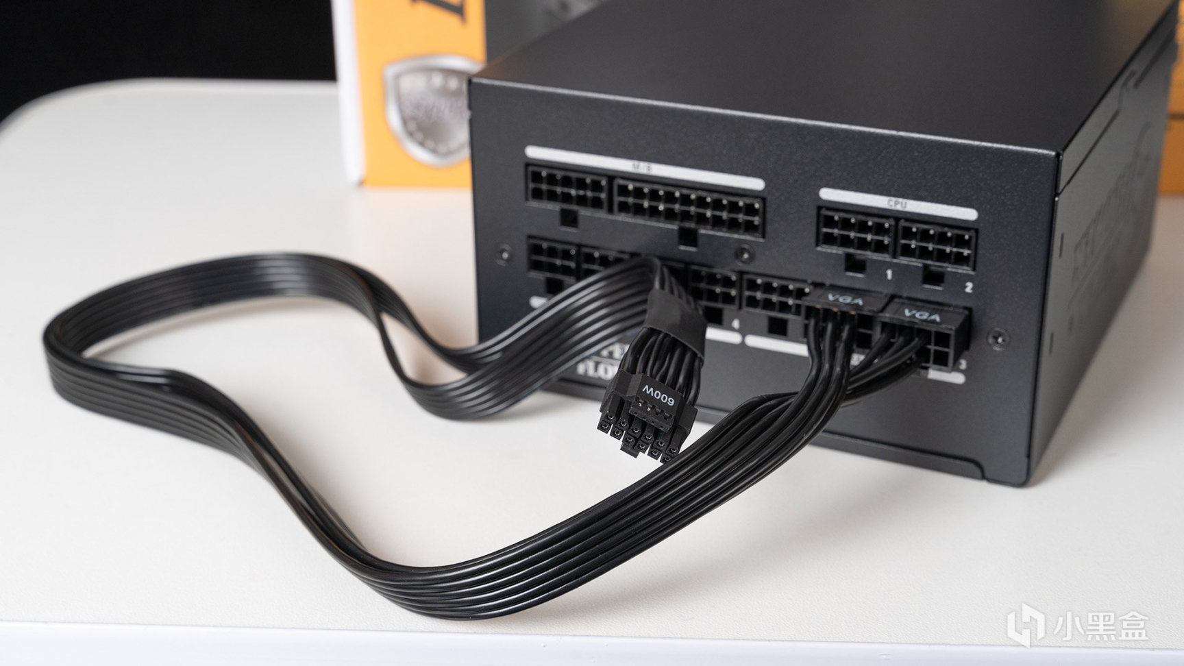 12VHPWR 16pin to 2*8Pin线材,和正常PCIe供电线一样,直接插在模组接口接口即可,虽然LEADEX HG850W架构不是PCIe 5.0电源设计,但PCIe 5.0线材用起来体验也没比原生很多差。