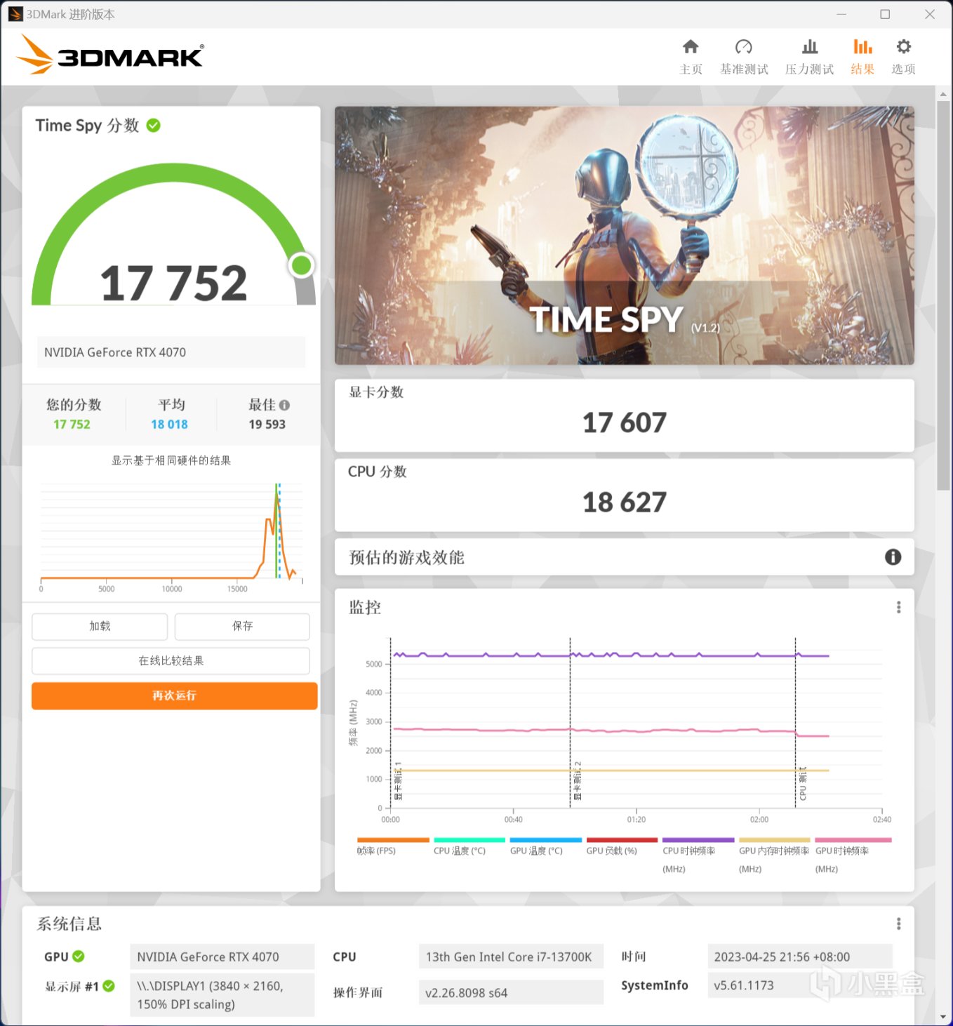 3DMark Time Spy跑分,Core i7-13700K+映众RTX 4070曜夜显卡分数为17607,这款非公虽然属于丐版,但是说实话和其他非公差距也不明显,最多也就2%,这款胜在高性价比之余,长度还只有250mm!