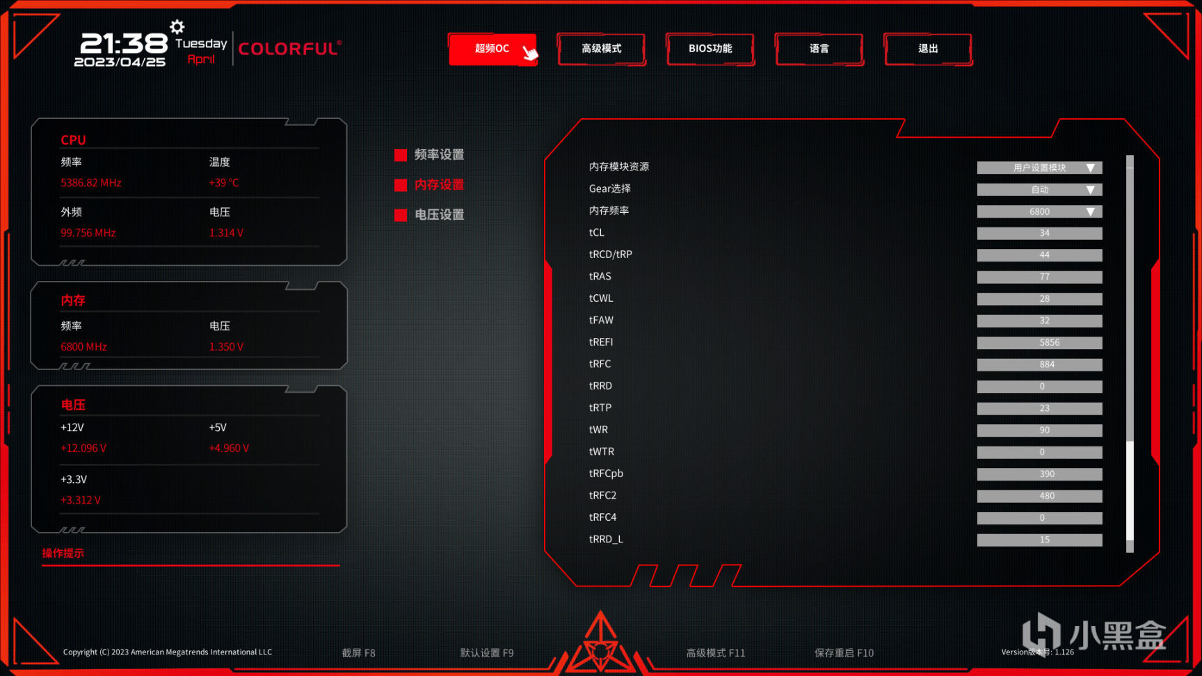 有一说一,七彩虹这款B760主板对于内存调教还是不够火候,内存VDD电压最多只能加到1.4V左右(本次是默认1.35V),属实不适合进阶内存超频玩家,对于尝鲜或者默认使用的玩家还行,毕竟对比两三年前这方面是有进步的。