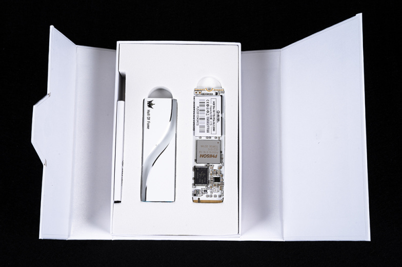 内包装很有仪式感,采用了磁吸式中央对开的方式,打开后可以看到SSD本体和独立的散热马甲。