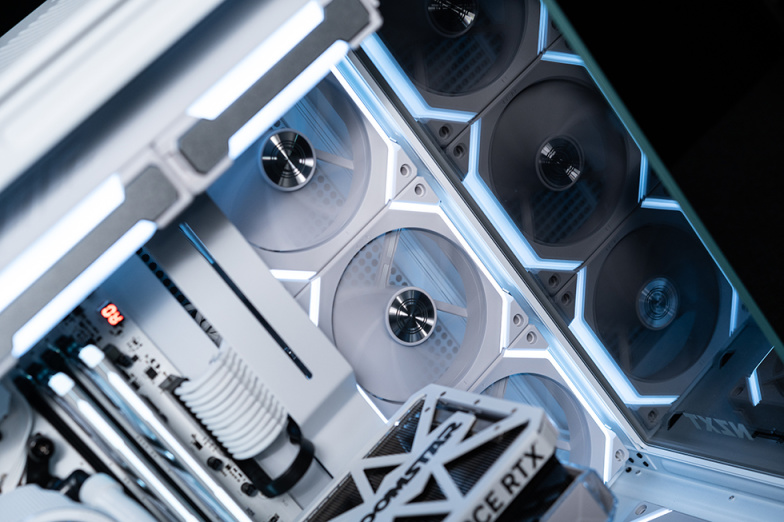 为了统一光效,机箱和水冷的风扇均替换成了联力SL120 V2。