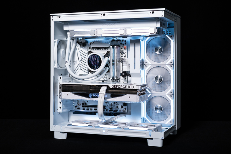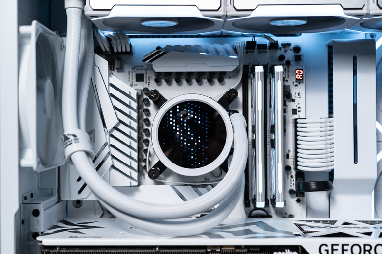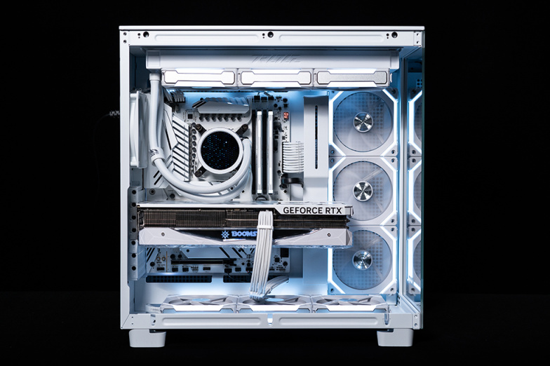 本次选用了白色的H9 Flow,所以整机以白色为主基调,主板使用了影驰 Z790 金属大师 D5 WI-FI 白金版主板,为数不多的白色PCB版型的Z790,显卡选用了影驰 4080 星曜,搭配13700K的组合能满足日常大多数使用需求。存储上选用ZADAK SPARK RGB DDR5内存和影驰 名人堂 HOF PRO 30 PCle 4.0 1TB,均为主流配置,散热和电源则是ROG RYUO 龙王3代 360 白色,华硕 ROG Strix 雪鹰电源,ROG的品质值得信赖,保证系统稳定和运行。