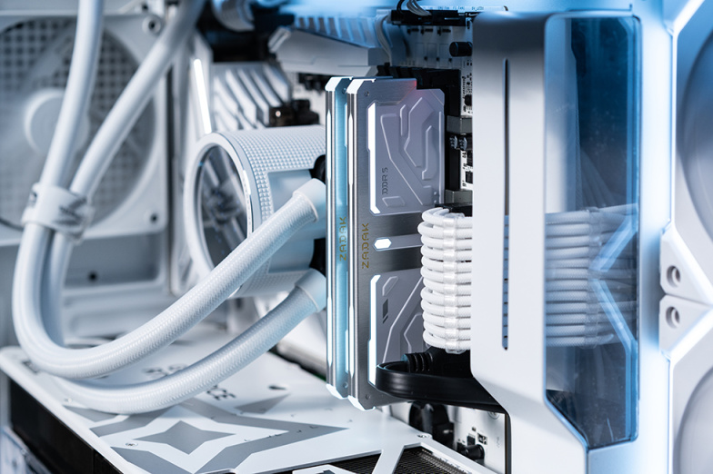 宇瞻的ZADAK SPARK RGB DDR5内存,是我最近使用频率最高的白色内存,特别喜欢其宝石设计风格的白色散热马甲,表面白色雾面磨砂工艺呈现出的质感也很到位,加之6000MHz的频率和32G的容量,性能方面也是够用。