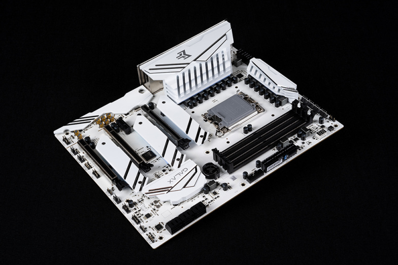 影驰的Z790金属大师,白色的METALTOP散热装甲搭配全白PCB,十分适合白色主题的装机。